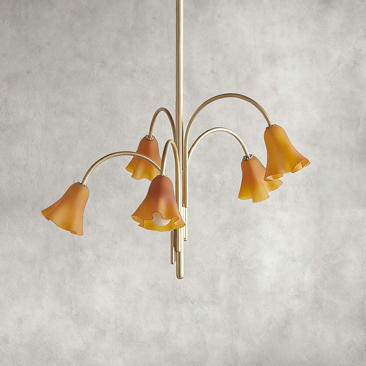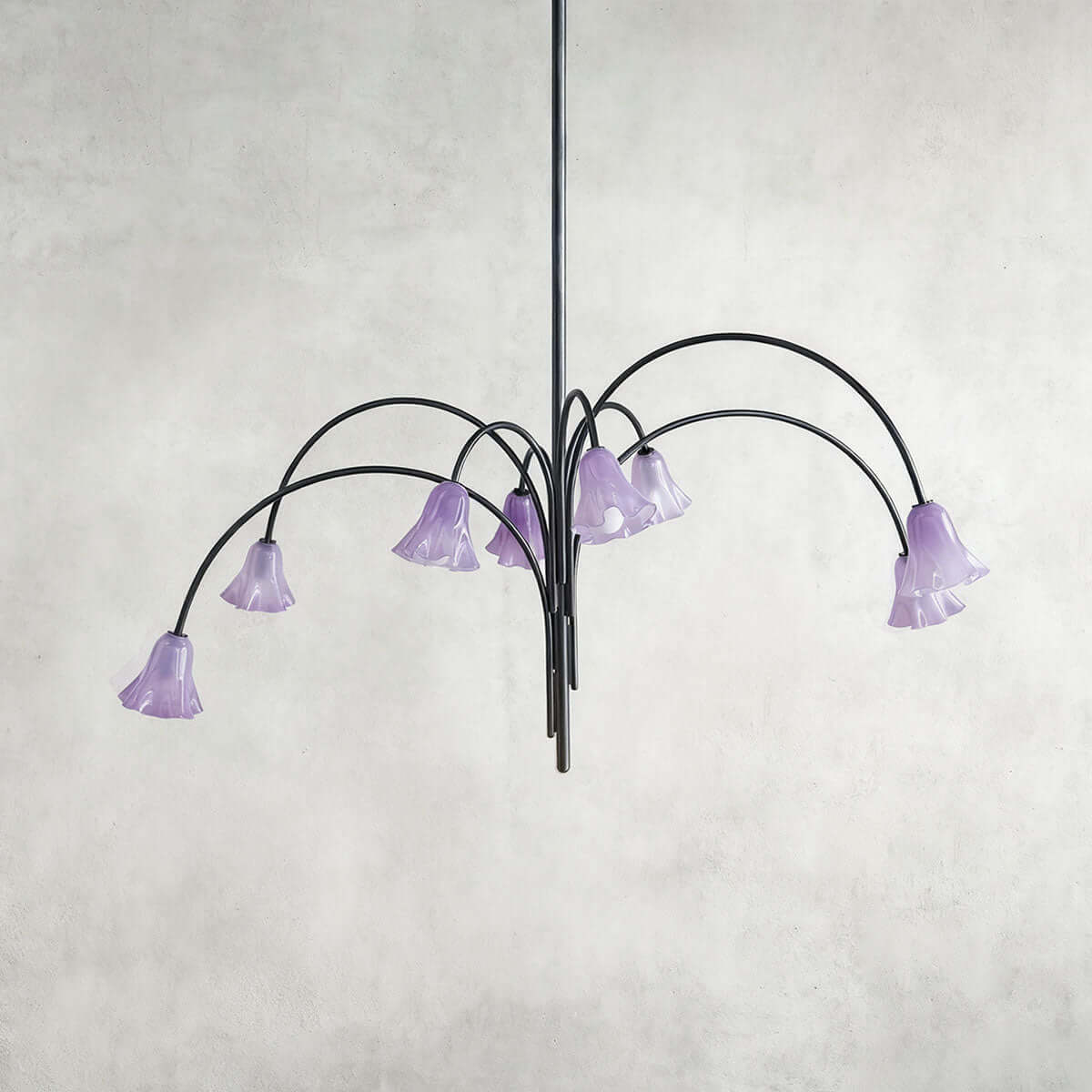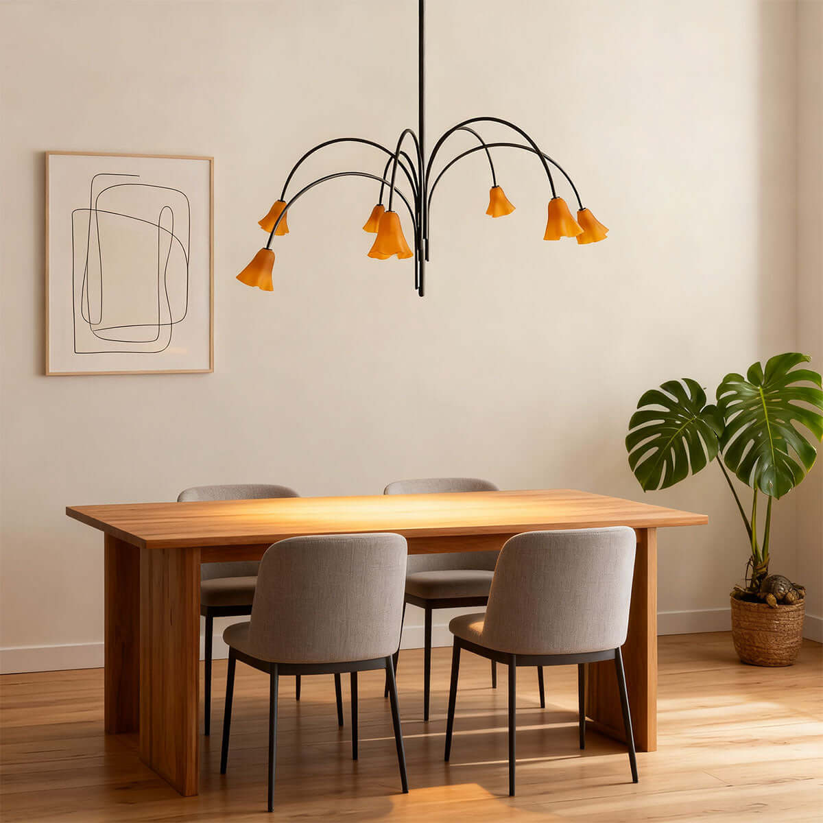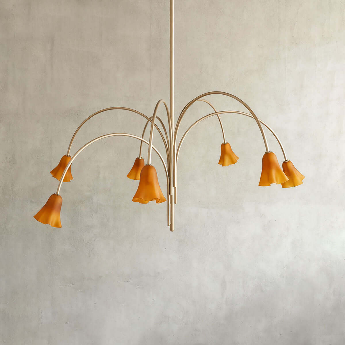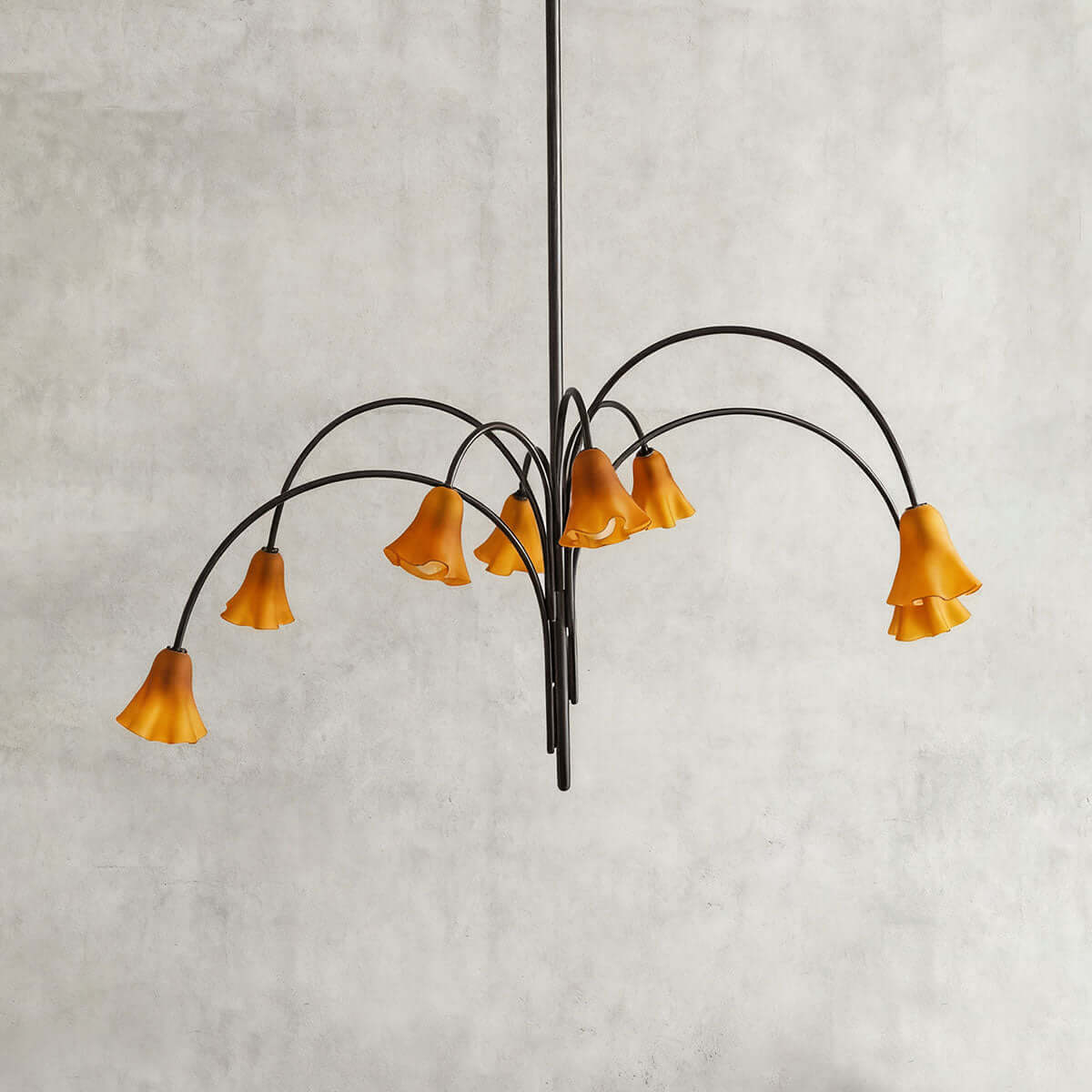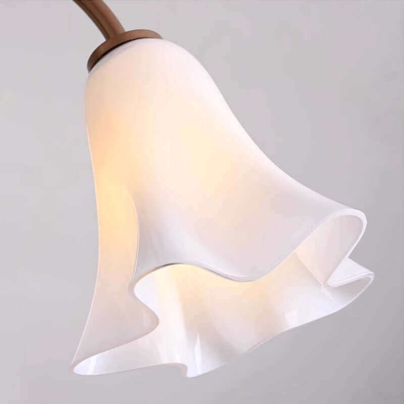 Unique flower-shaped glass shade diffuses warm, gentle light for a calm and inviting atmosphere.