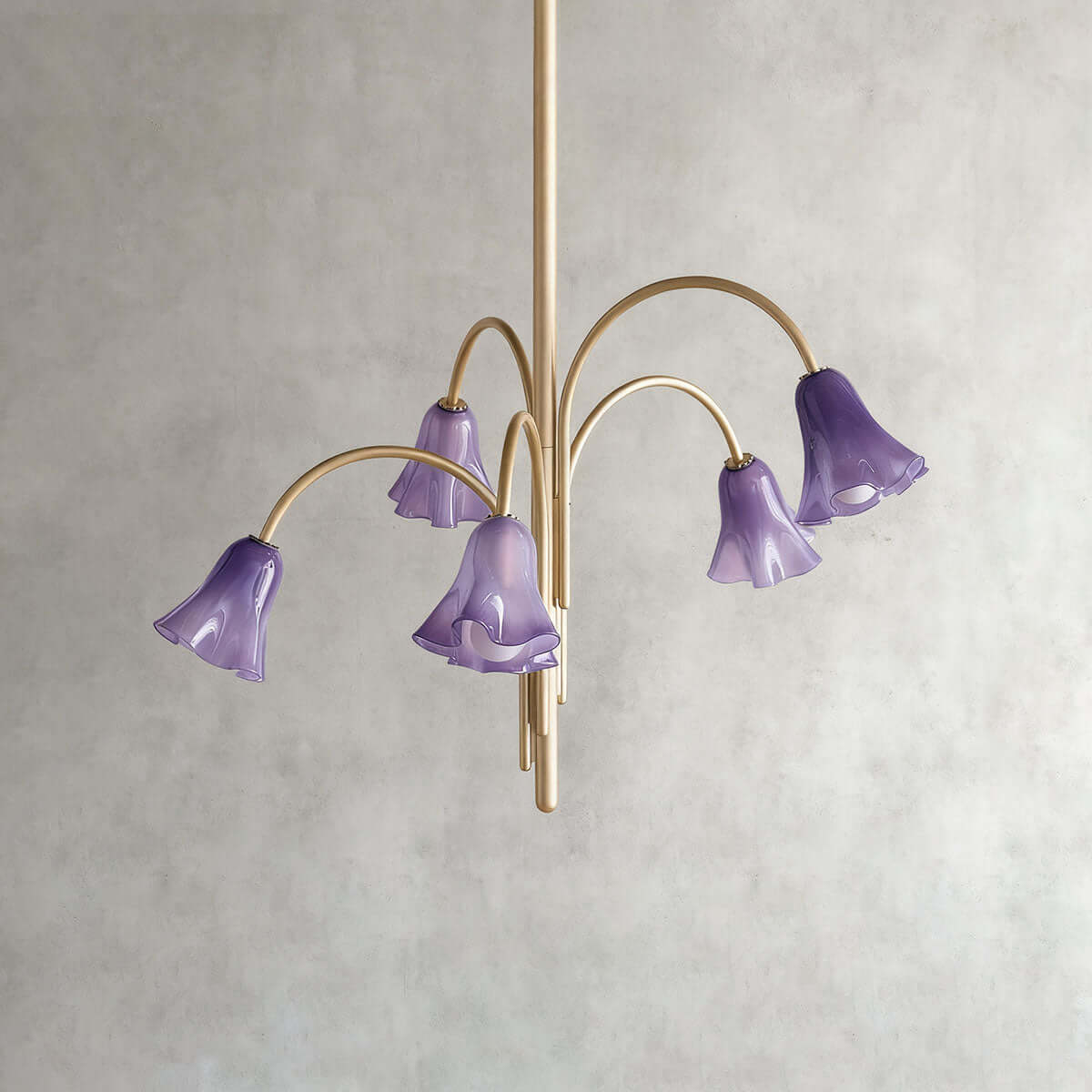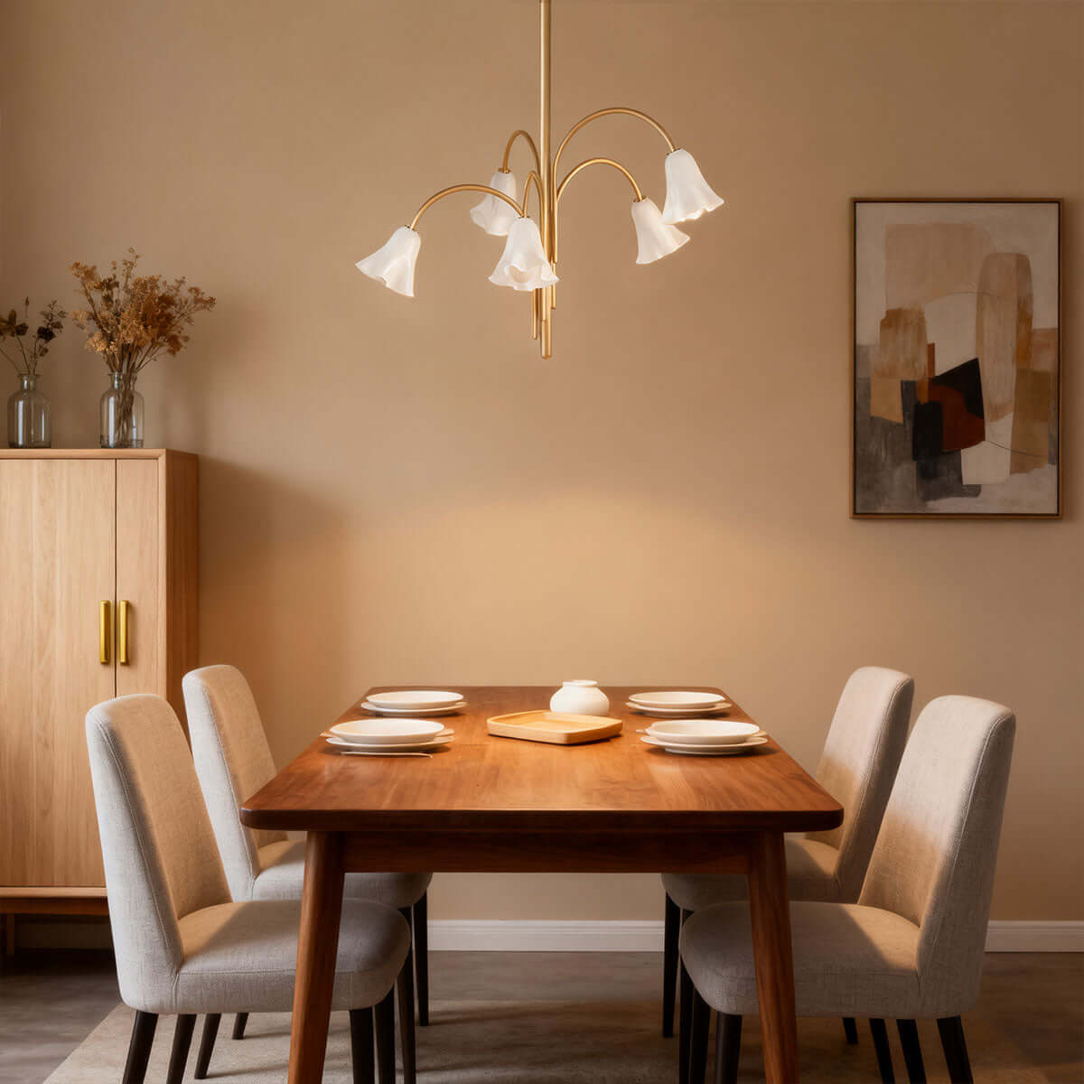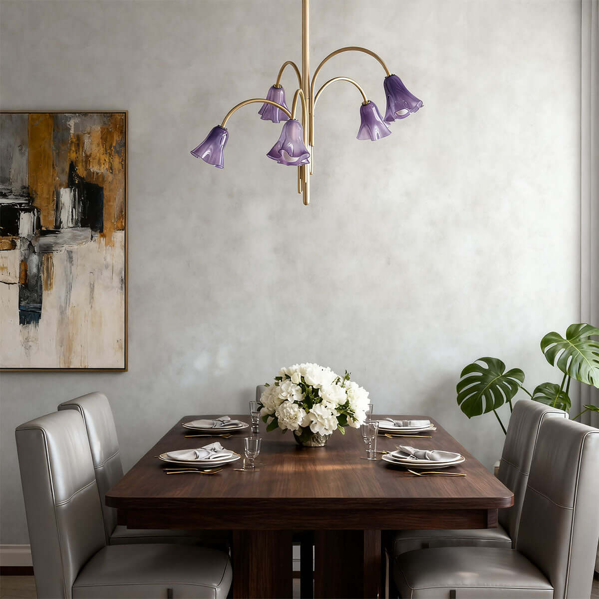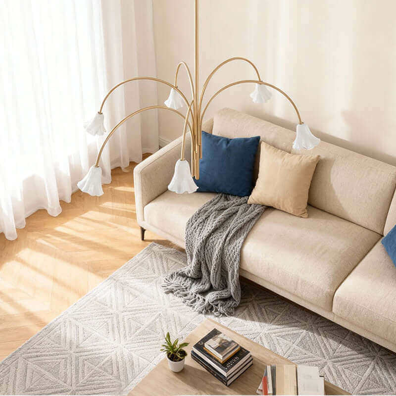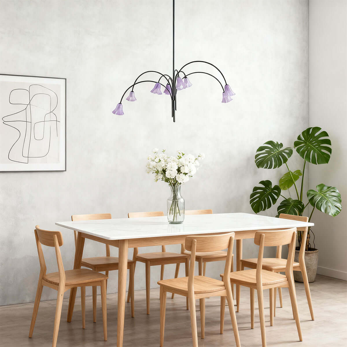 Unique flower-shaped glass shade diffuses warm, gentle light for a calm and inviting atmosphere.