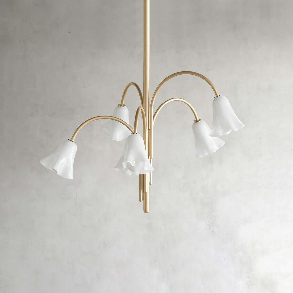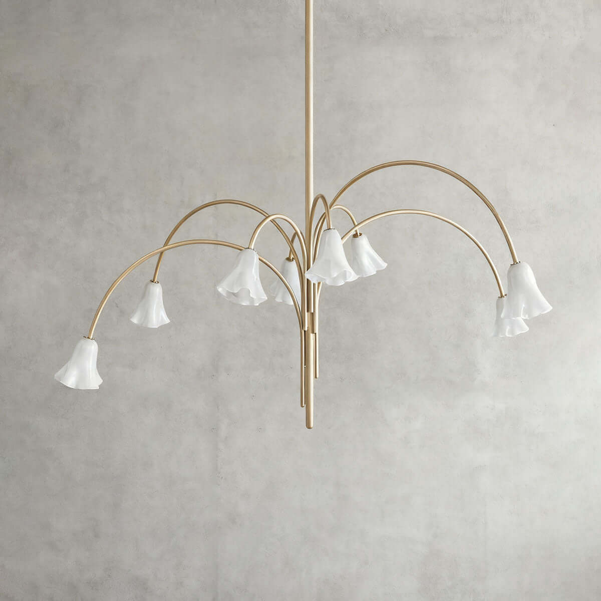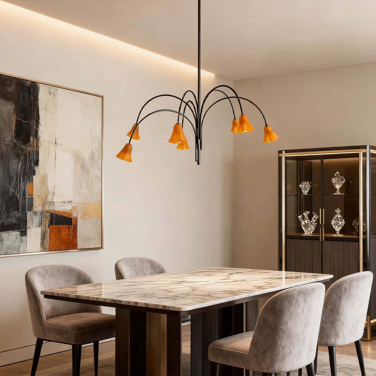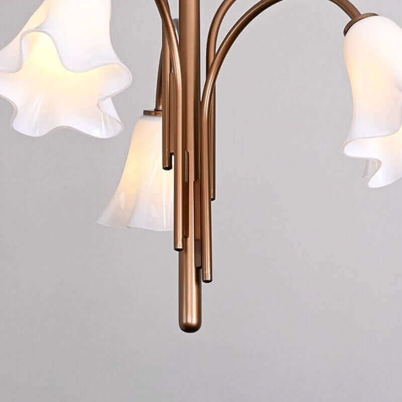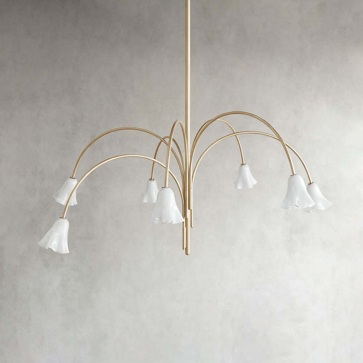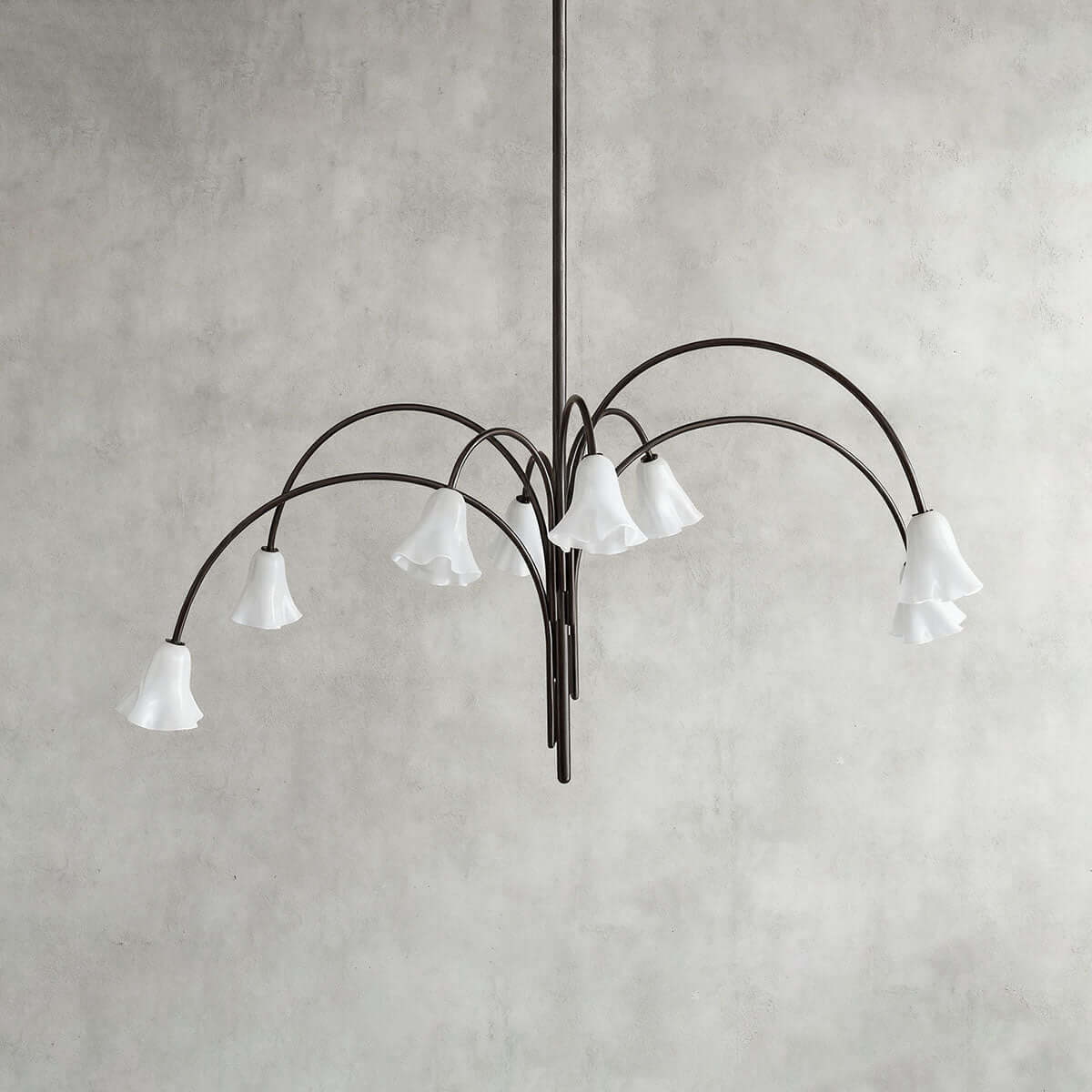 Unique flower-shaped glass shade diffuses warm, gentle light for a calm and inviting atmosphere.