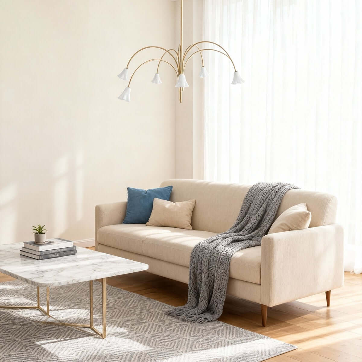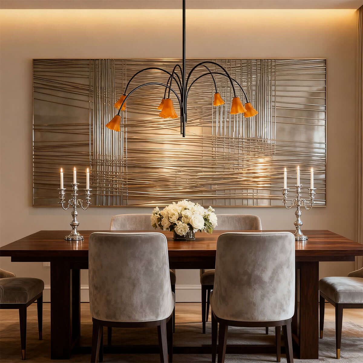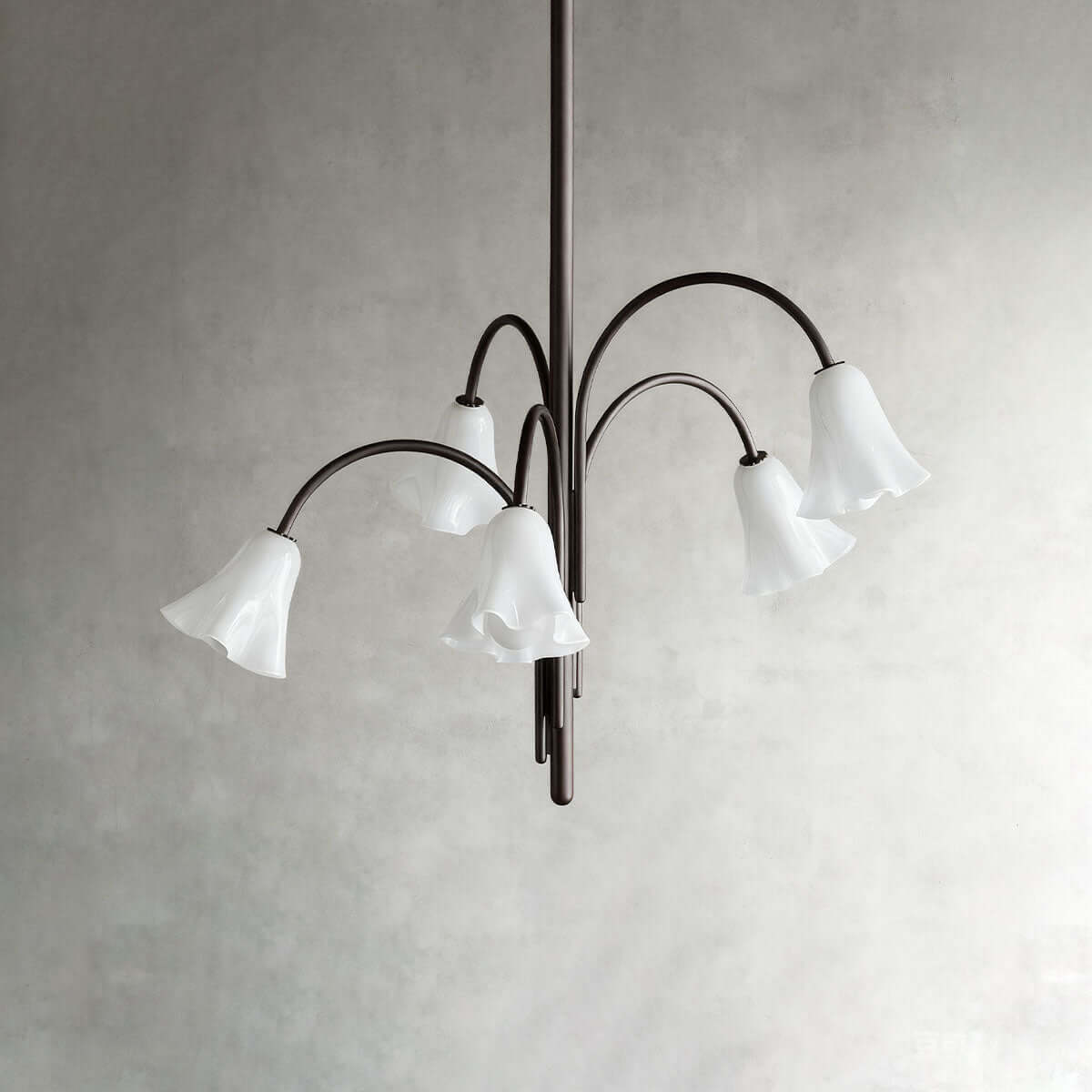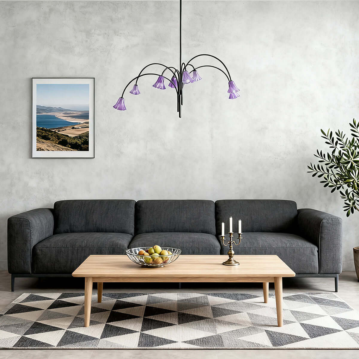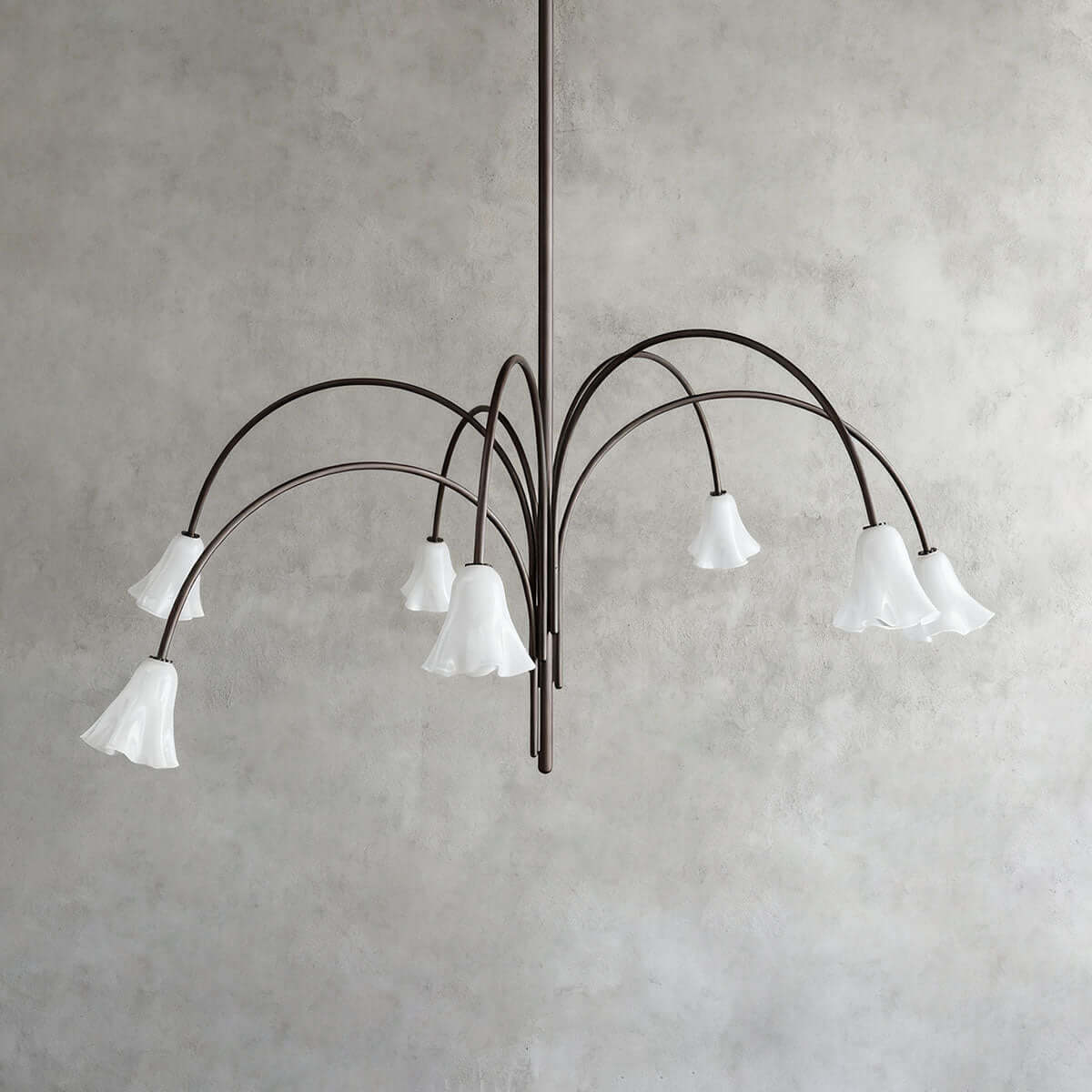 Unique flower-shaped glass shade diffuses warm, gentle light for a calm and inviting atmosphere.