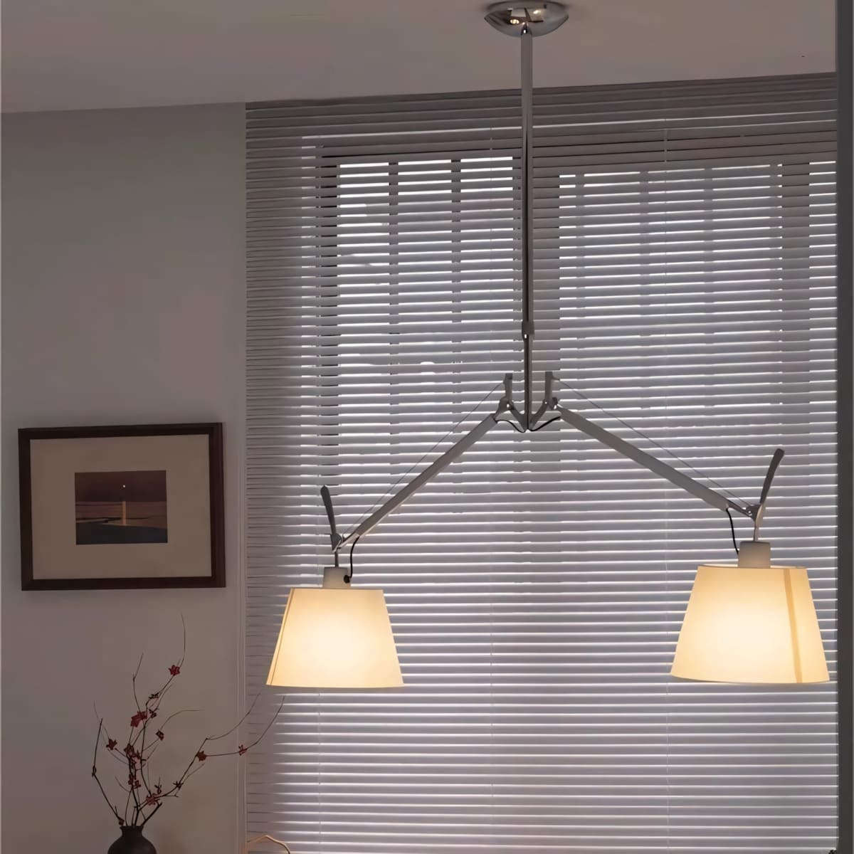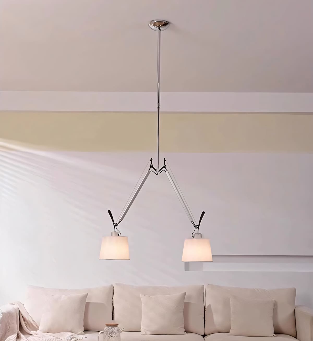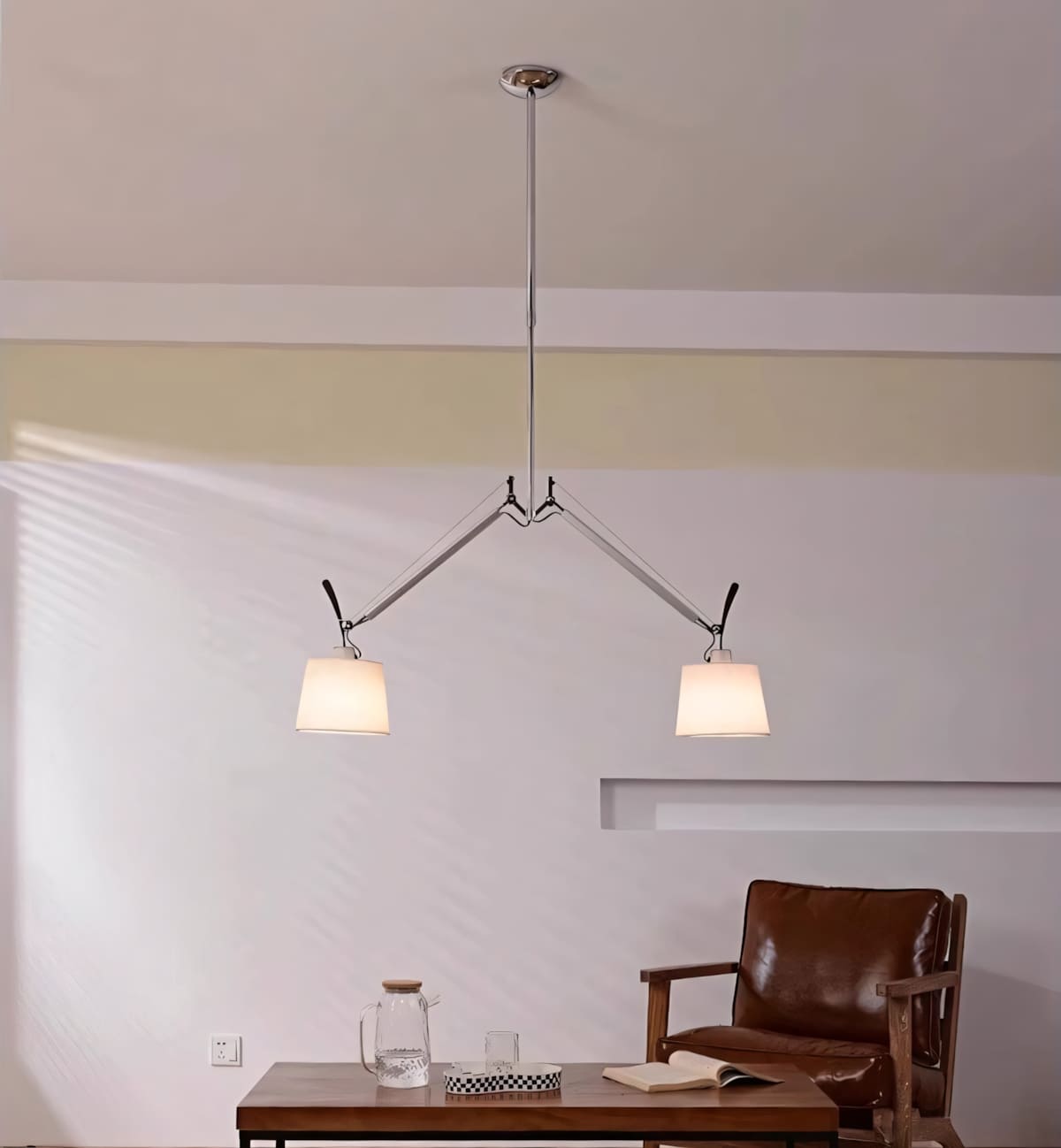 Elevate your space with the Kastel Chandelier—a stunning fusion of modern design and functionality. Featuring a double-arm swing chandelier with adjustable arms and elegant parchment shades, it seamlessly adapts to your room’s vibe. Perfect for kitchens, reading nooks, and bedside spaces, its minimalist style complements any decor.