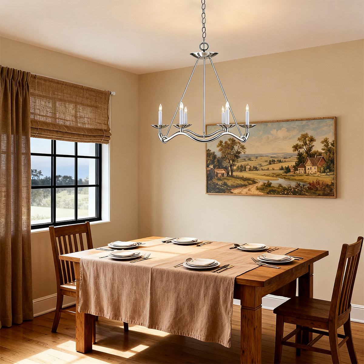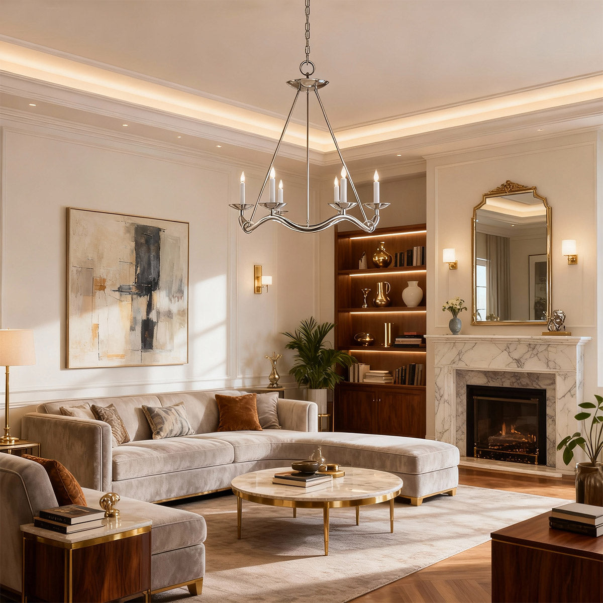 Unique curved arms add a modern, artistic touch, making this chandelier a stunning statement piece for your interior decor.