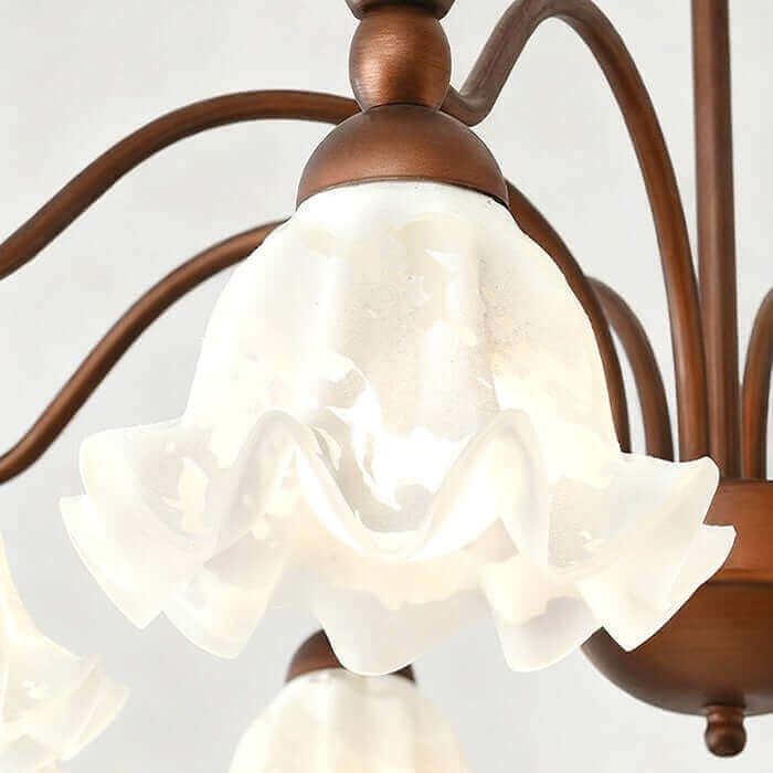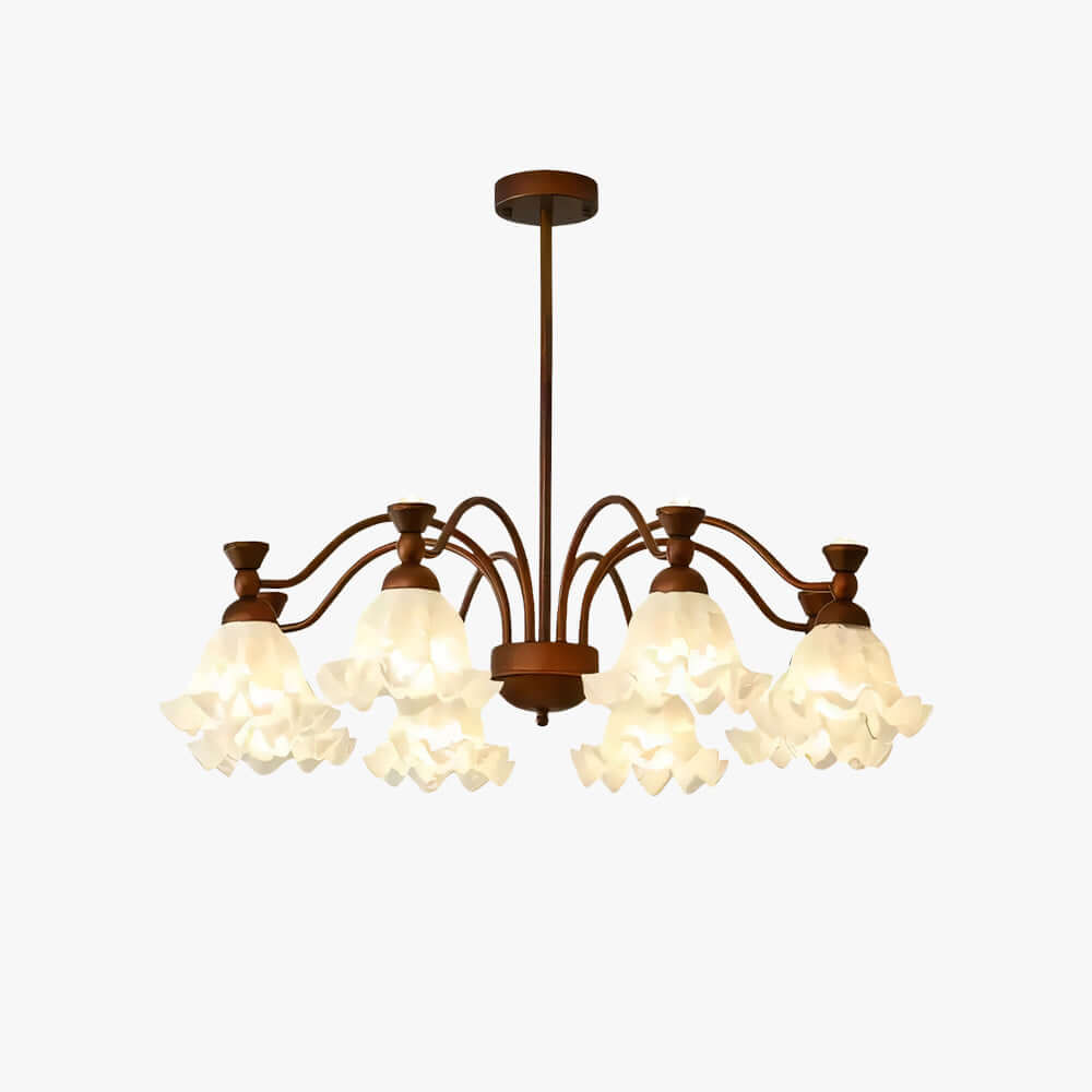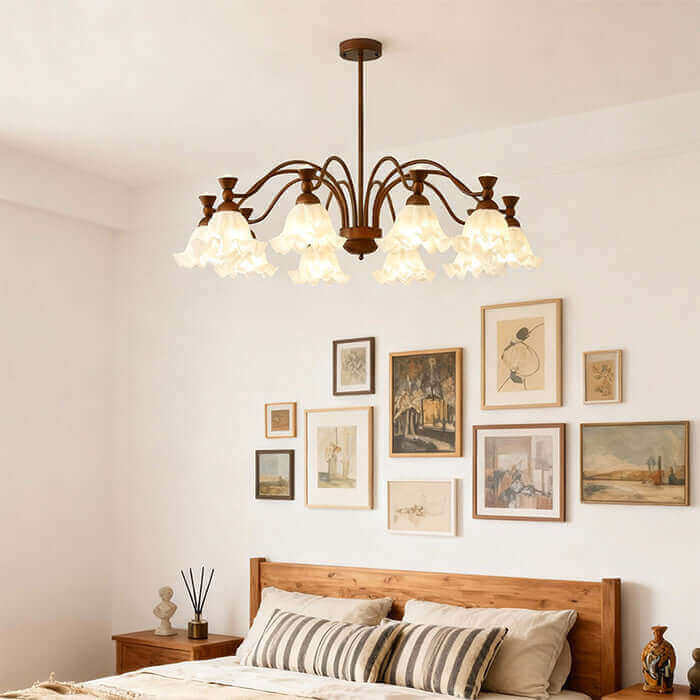 Bring timeless charm into your home with the Lorena Chandelier. Inspired by American retro style, it features a flower-shaped glass lampshade and metal frame. The high-transmittance glass diffuses a warm, even glow, adding cozy elegance to bedrooms, living rooms, or dining spaces.