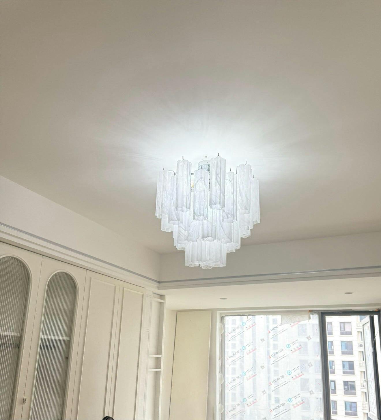 Artistic glass tubes with rich texture create a soft, warm ambiance that feels effortlessly upscale.