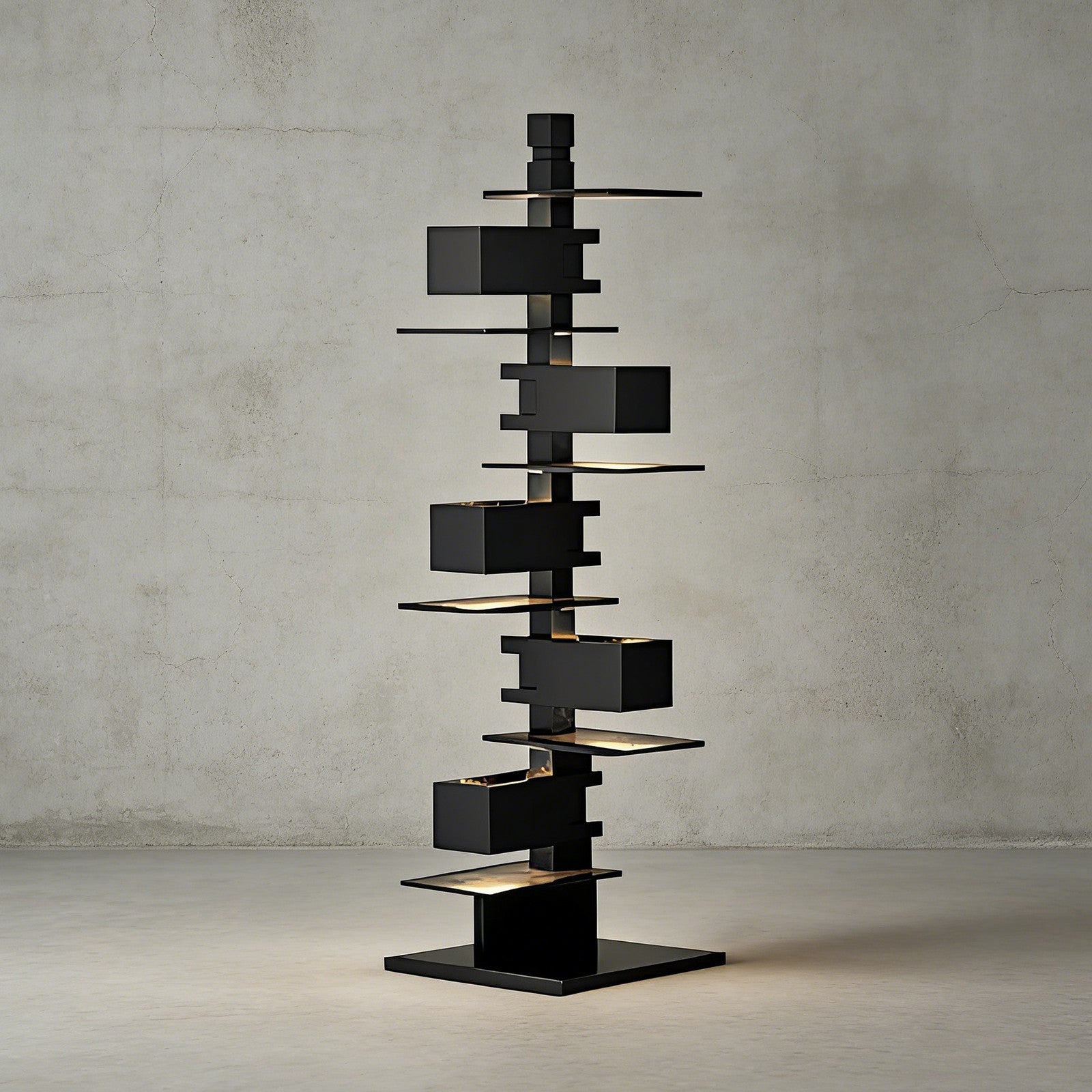 Brighten your room with the Taliesin Table Lamp, featuring a unique tower-like design crafted from stacked solid wood boxes. The warm glow mimics natural sunlight, creating a peaceful ambiance. Inspired by legendary architecture, it brings organic, filtered light into your home for a tranquil atmosphere.