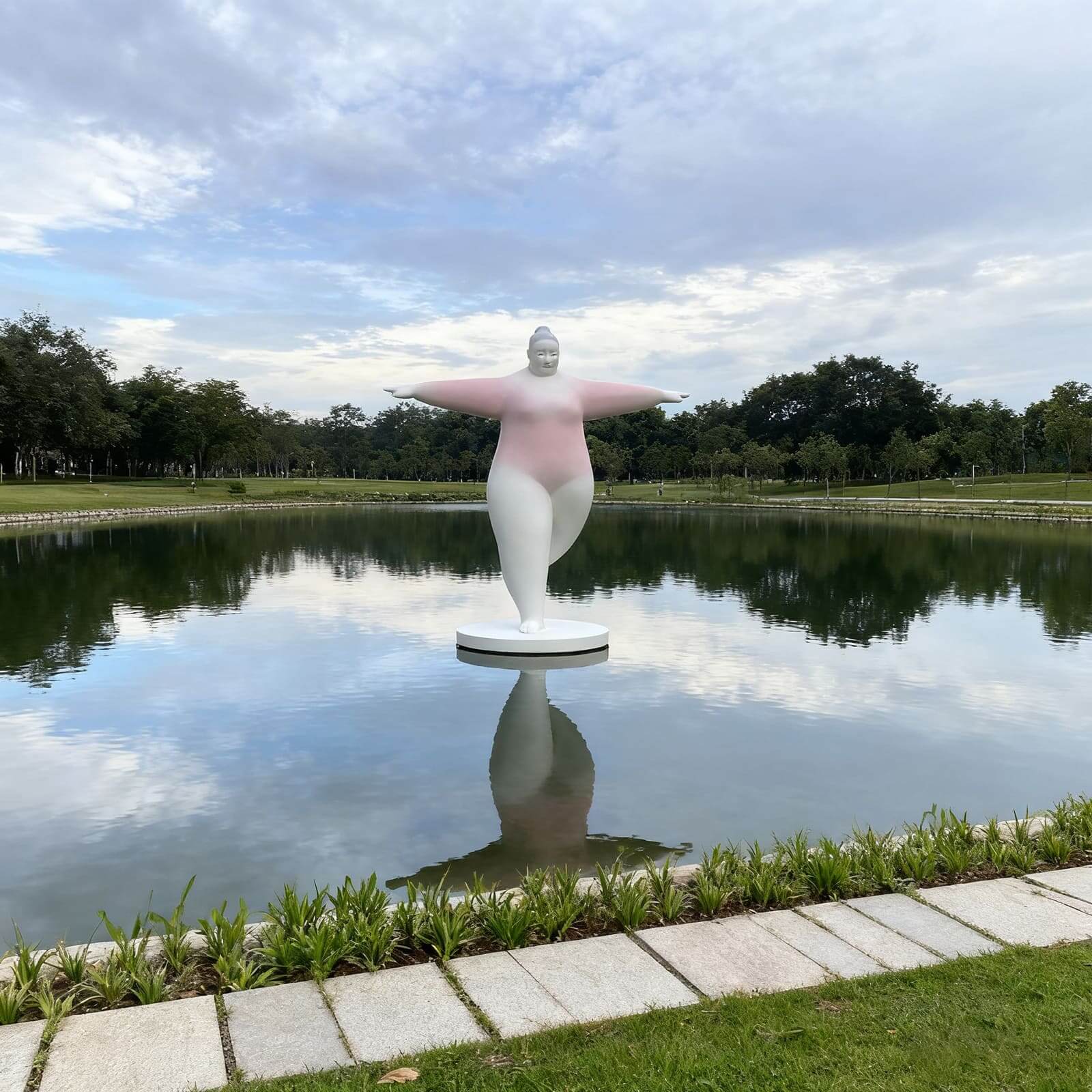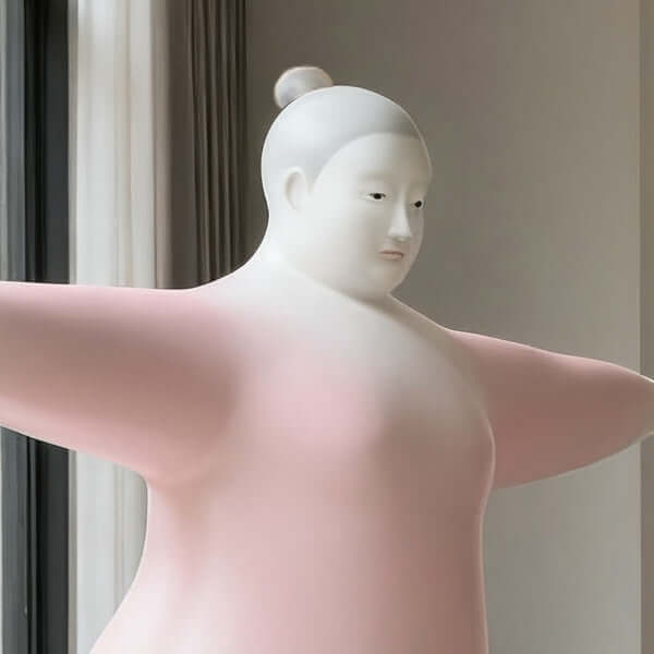 The graceful pose and open arms radiate a joyful, welcoming energy—ideal for uplifting any modern or minimalist interior.