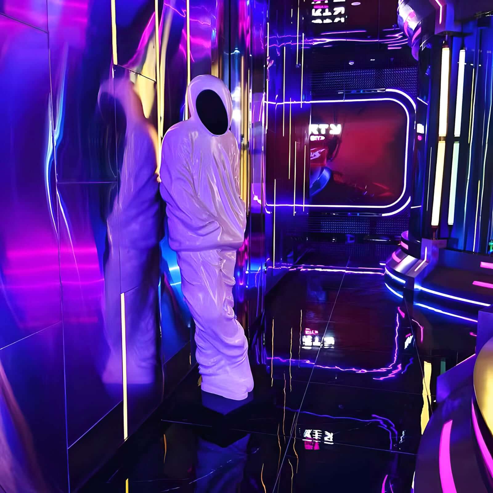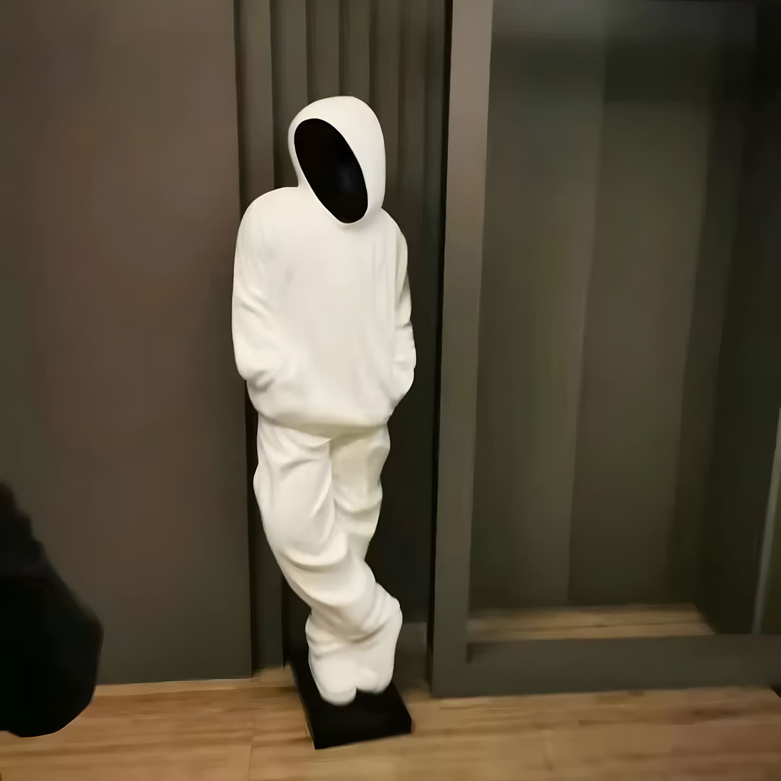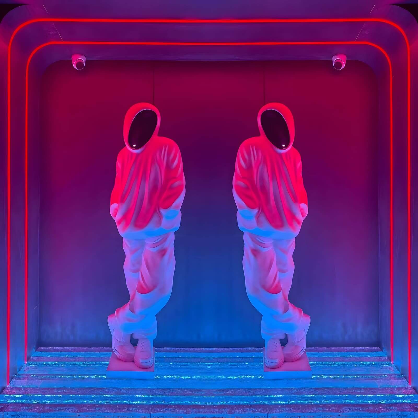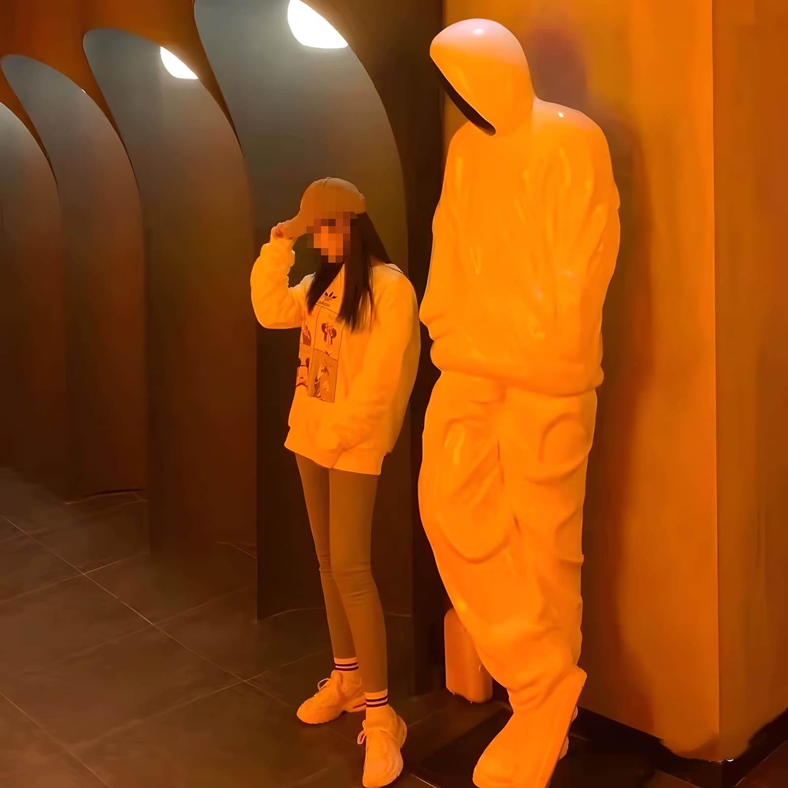 The laid-back hoodie design and relaxed posture capture a bold streetwear vibe, perfect for modern interiors.