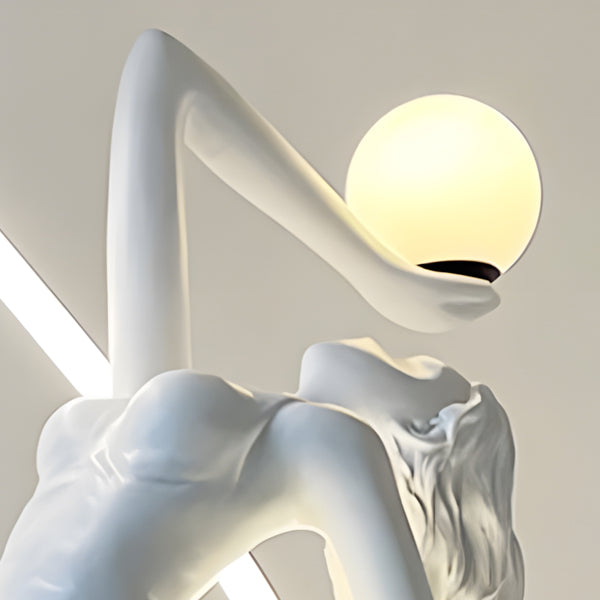 The Seralya Sculpture Floor Lamp is a stunning fusion of light and artistry. Crafted in matte white resin, the sculpted human form exudes elegance and modern charm. Whether placed in a hotel, living room, or gallery-inspired interior, this oversized floor lamp adds a minimalist, art deco statement to your space.