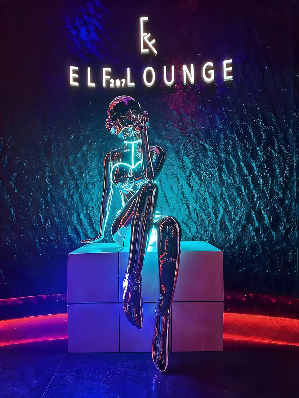 The glowing neon-like lines create an eye-catching effect, enhancing the room’s atmosphere with dynamic light.