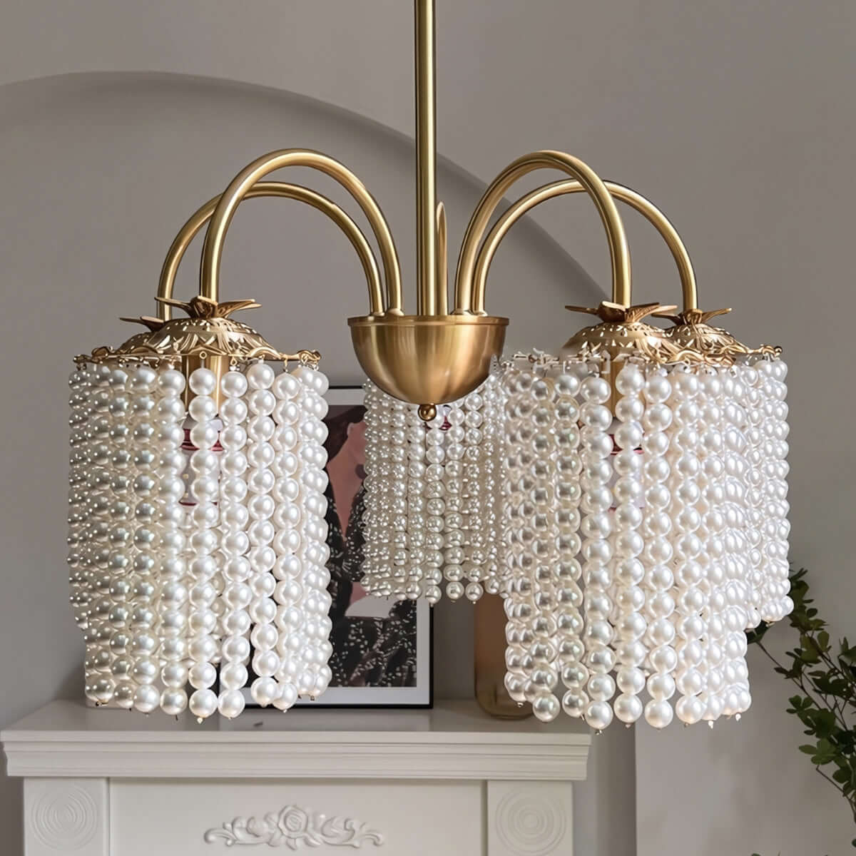 Erovila Chandelier - French Vintage Luxury Brass Pearl Lighting