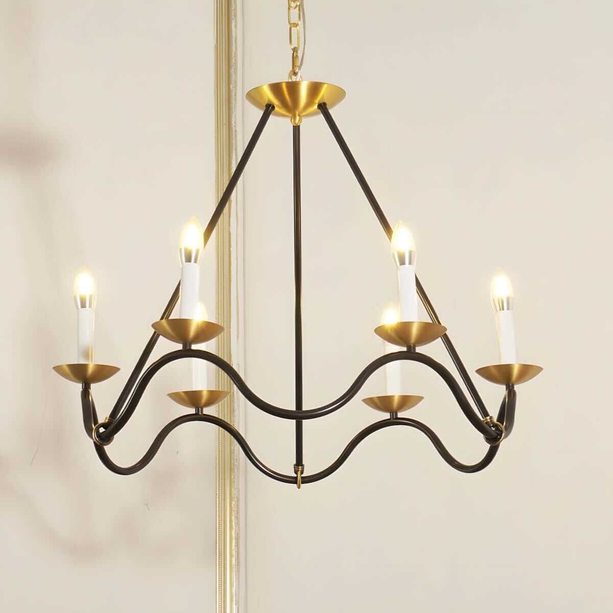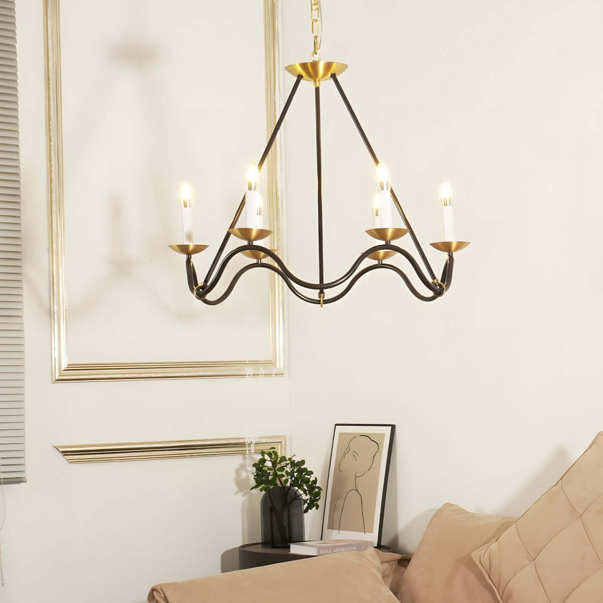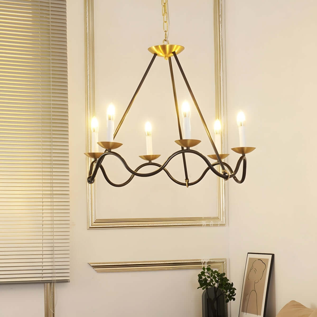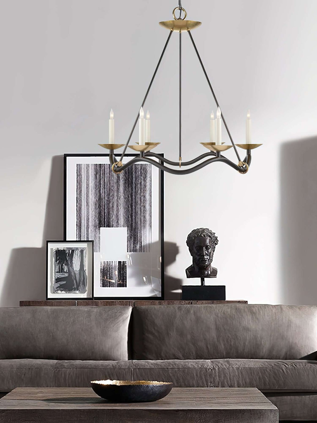 The Kira Movo Chandelier combines sleek modern lines with candle-inspired lighting to create a warm, inviting glow. Perfect for American-style villas and living rooms, this simple yet luxurious fixture enhances any space with timeless charm and soft, elegant illumination.