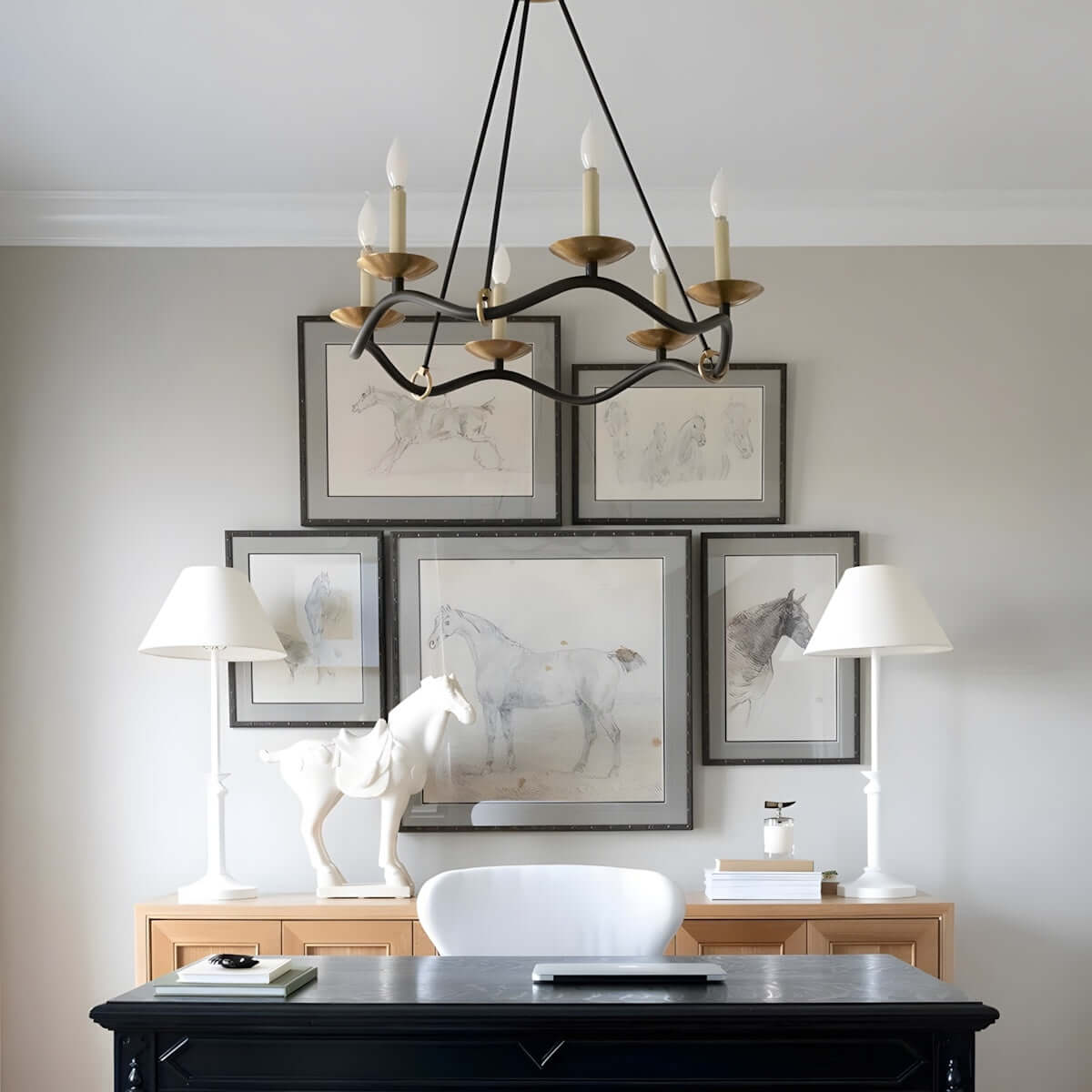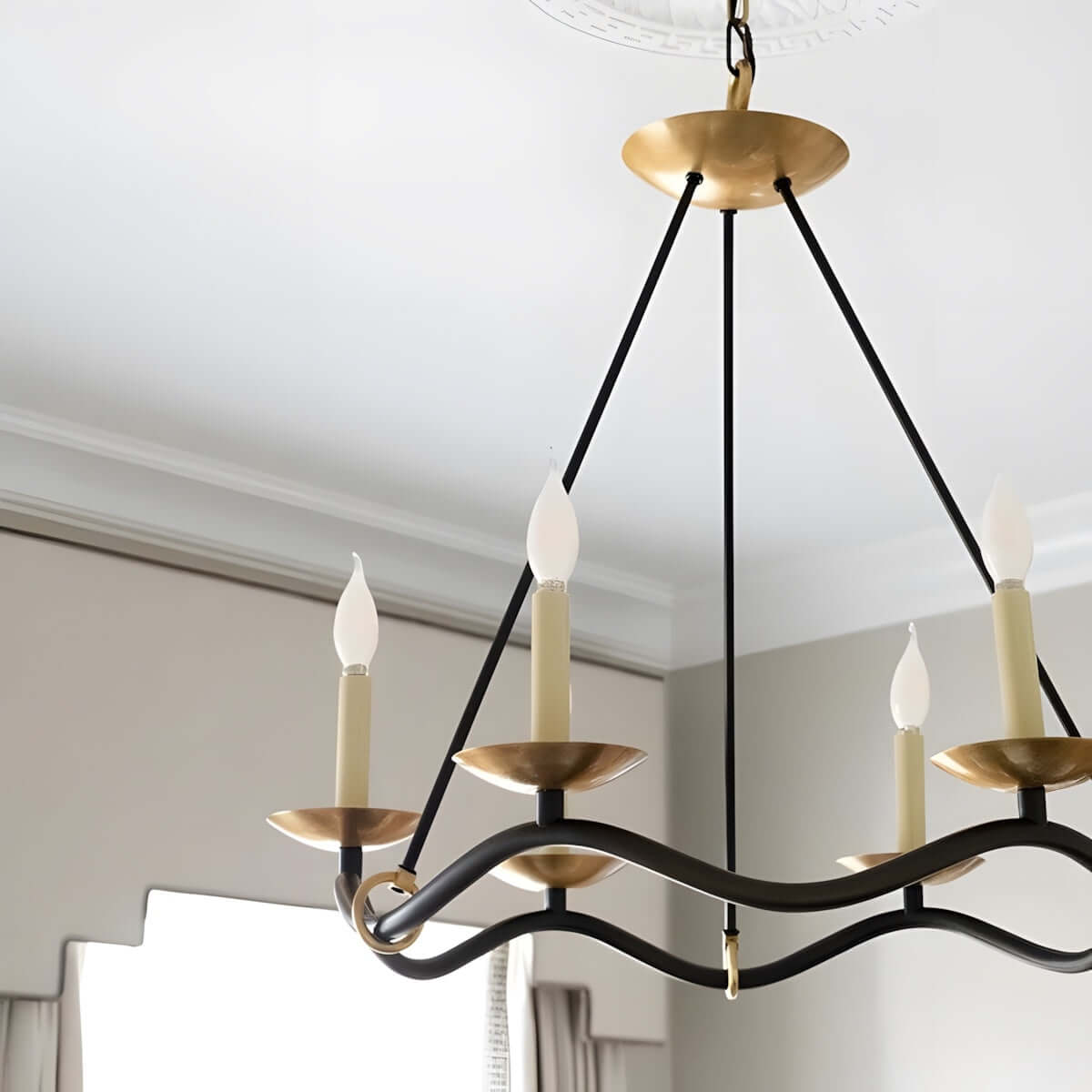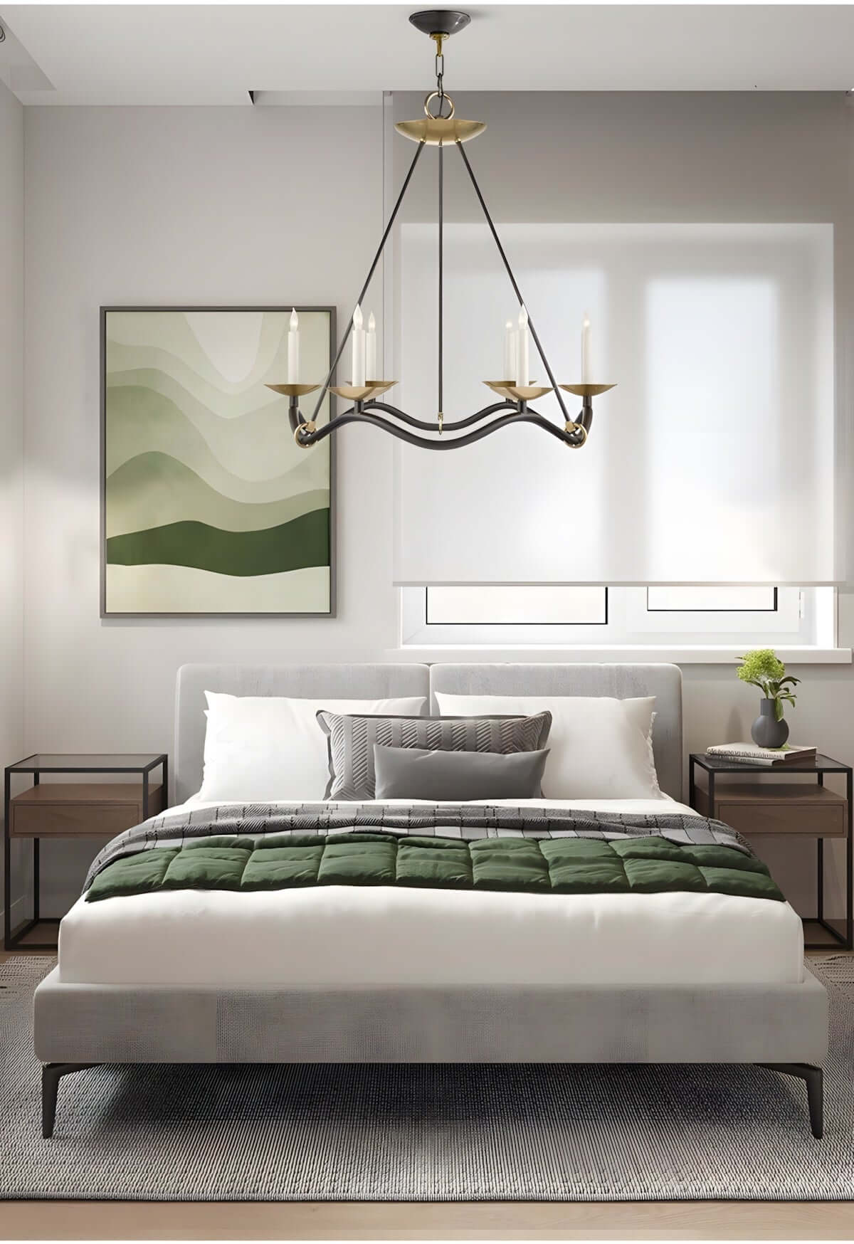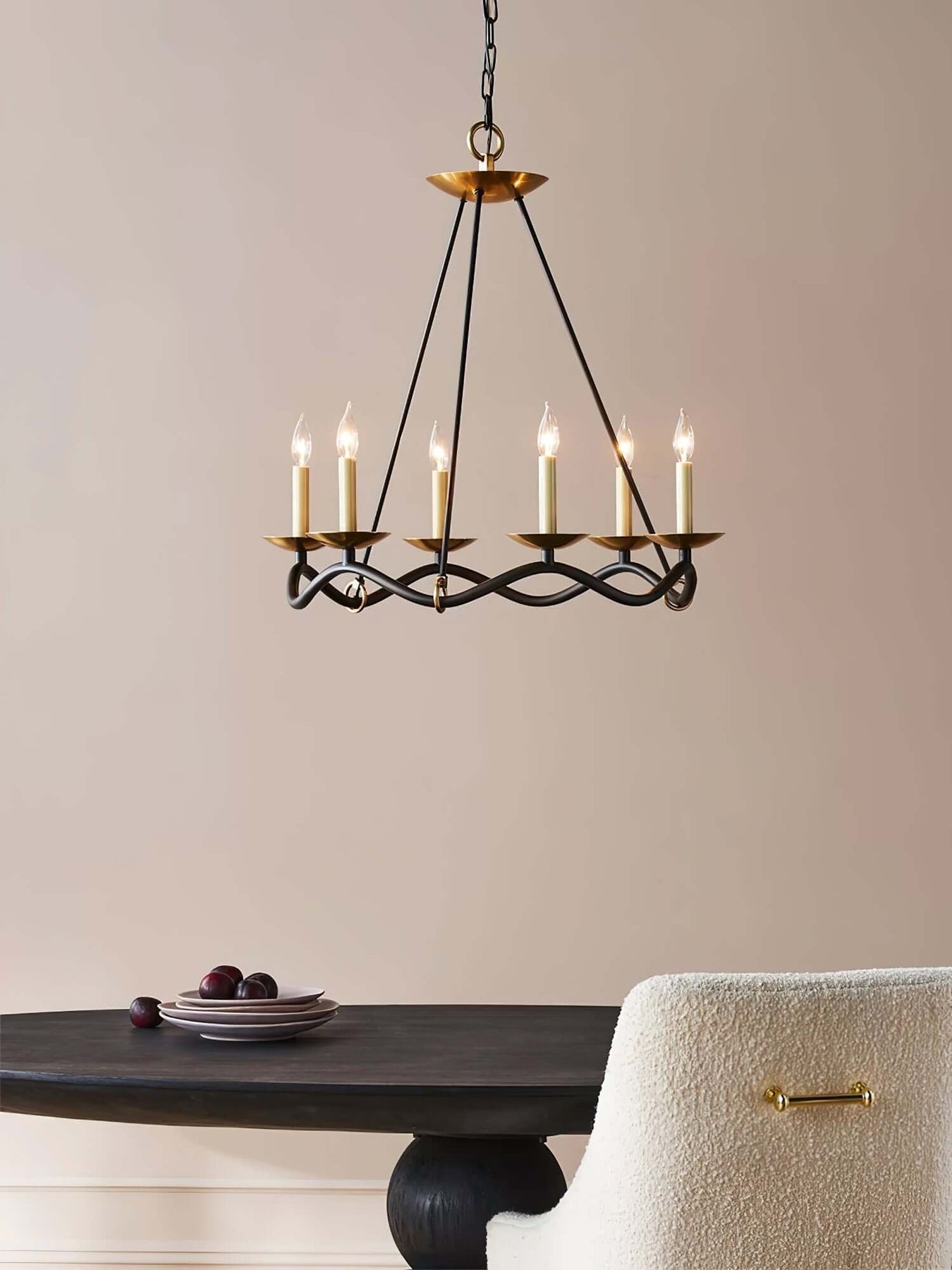 The Kira Movo Chandelier combines sleek modern lines with candle-inspired lighting to create a warm, inviting glow. Perfect for American-style villas and living rooms, this simple yet luxurious fixture enhances any space with timeless charm and soft, elegant illumination.
