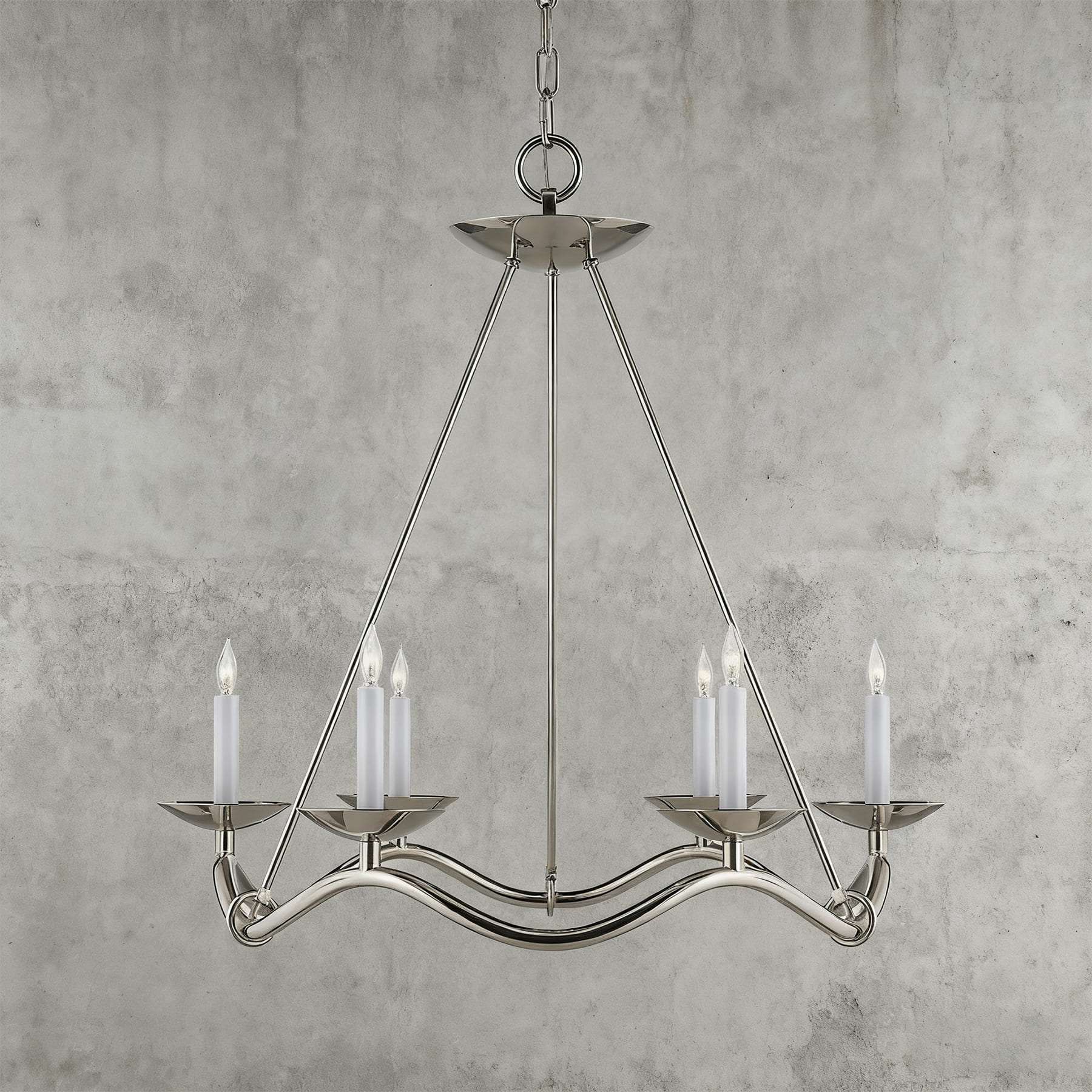 Unique curved arms add a modern, artistic touch, making this chandelier a stunning statement piece for your interior decor.