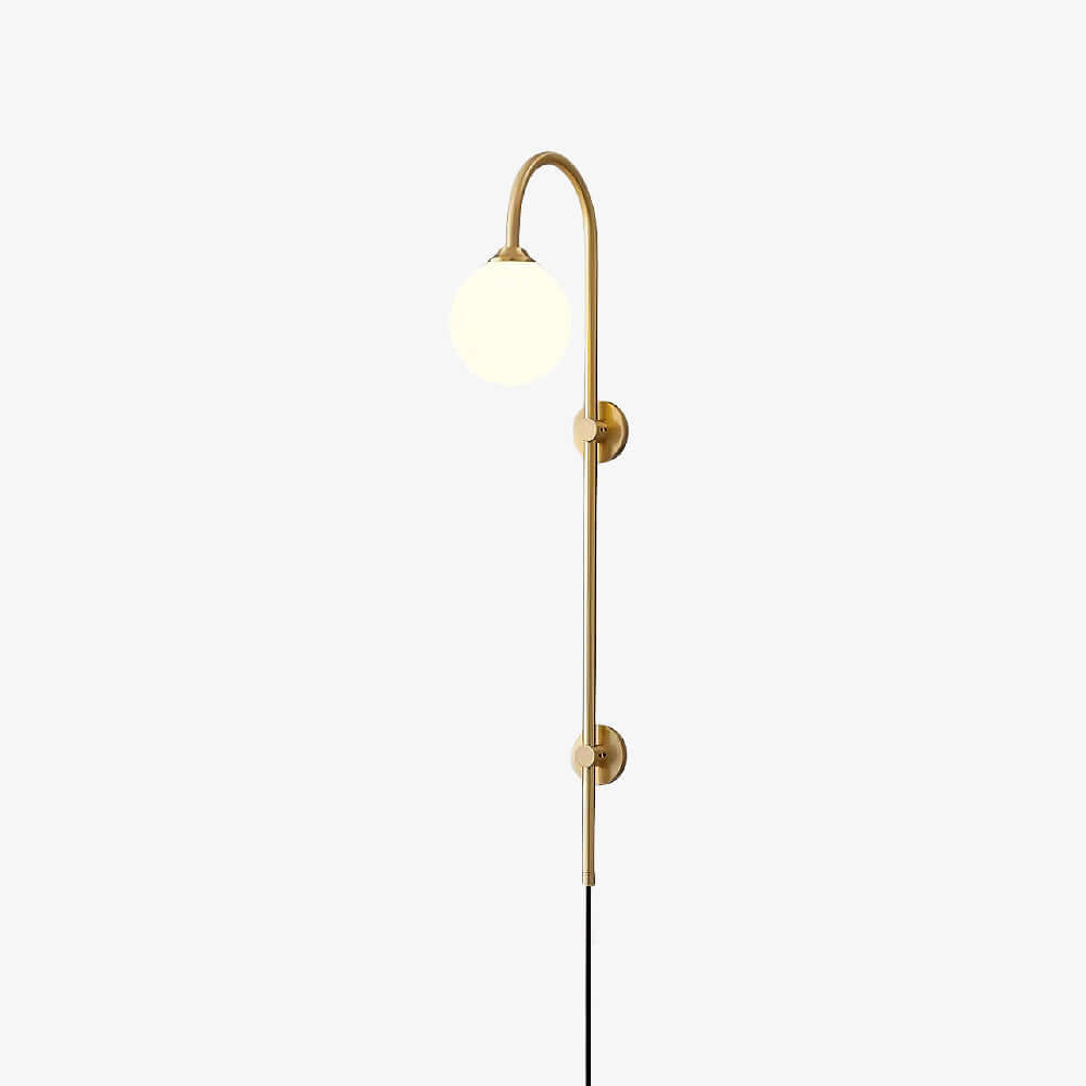 The Lunivex Plug In Wall Lamp blends Nordic simplicity with light luxury. A golden brass stem holds a glowing white glass sphere, creating a radiant focal point. Perfect for hallways, bedside spaces, or entryways, its postmodern design elevates interiors with personality and subtle drama.