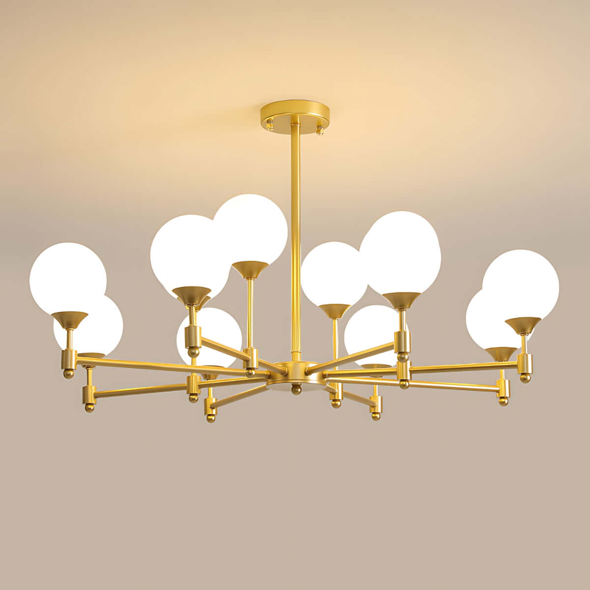 The Tzaro Chandelier is the perfect fusion of modern and minimalist design. Crafted from premium brass, it features elegantly designed glass shades that emit a soft, warm glow. Ideal for your bedroom, living room, or dining area, this chandelier adds a personalized art touch to any space.
