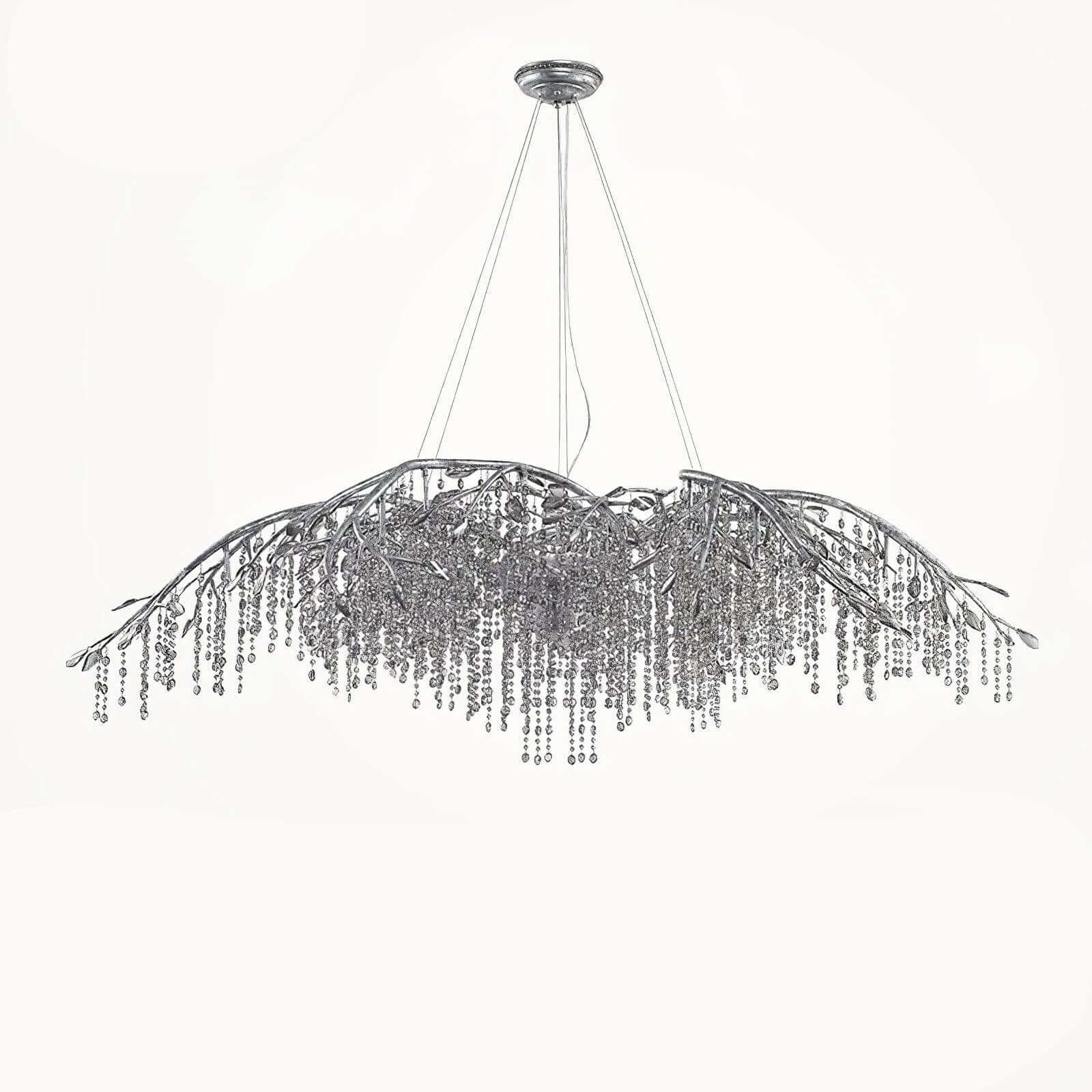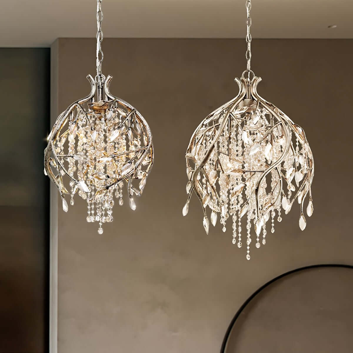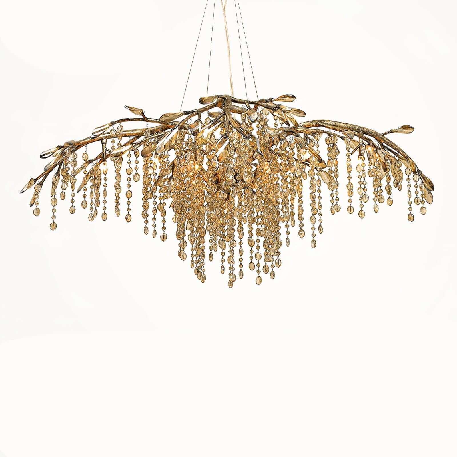 Inspired by nature, this chandelier features golden branches adorned with crystal beads like dewdrops on a forest canopy. Warm candelabra light reflects across the shimmering crystals, creating a statement centerpiece for hallways, bedrooms, lobbies, or luxurious living spaces.