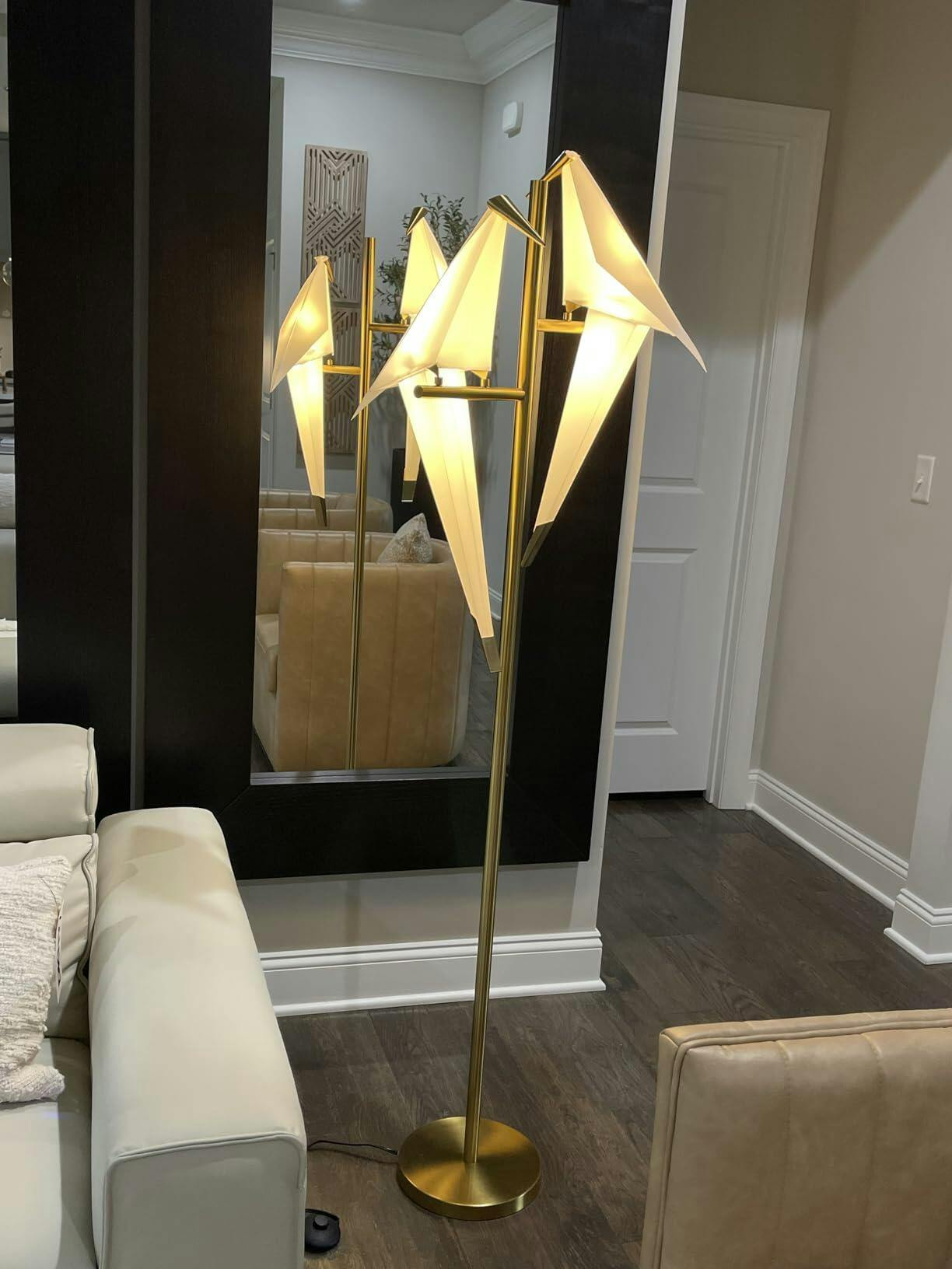 Art Deco gold floor lamp shaped like paper cranes, perfect for living room and entry decor.