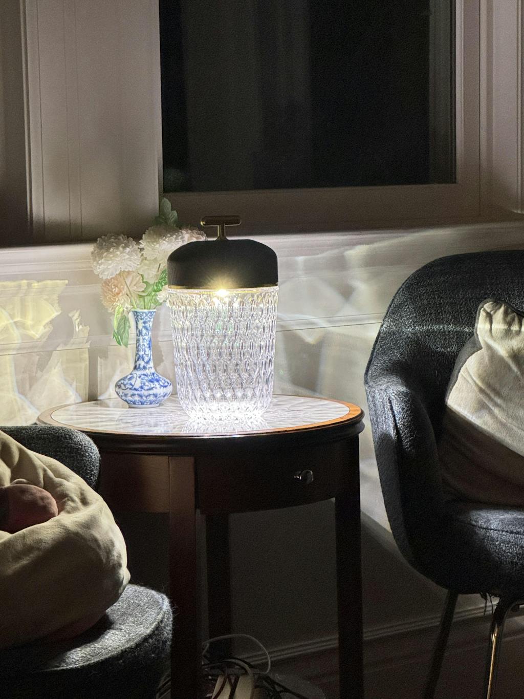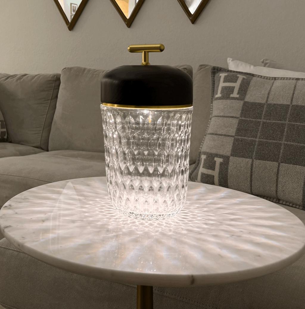 Folia Portable Lamp: stylish rechargeable crystal table lamp, modern art deco design, perfect for home decor and ambiance.
