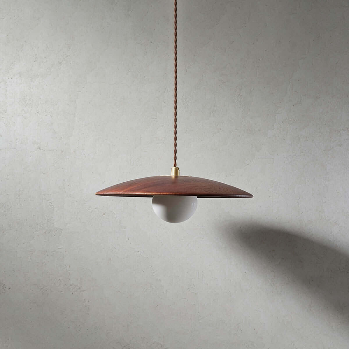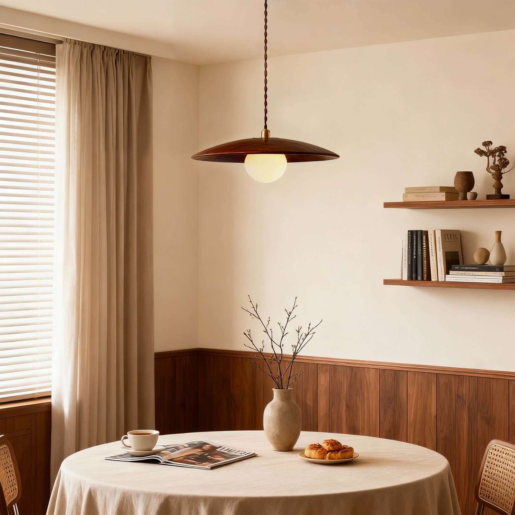 The Kemiro Pendant Light combines Japanese Wabi-sabi simplicity with retro wood design. Featuring a natural wood disc lampshade, this pendant light offers soft, ambient illumination. Perfect for dining rooms, bedrooms, or relaxation areas, it creates a warm, inviting atmosphere with refined elegance and timeless sophistication.