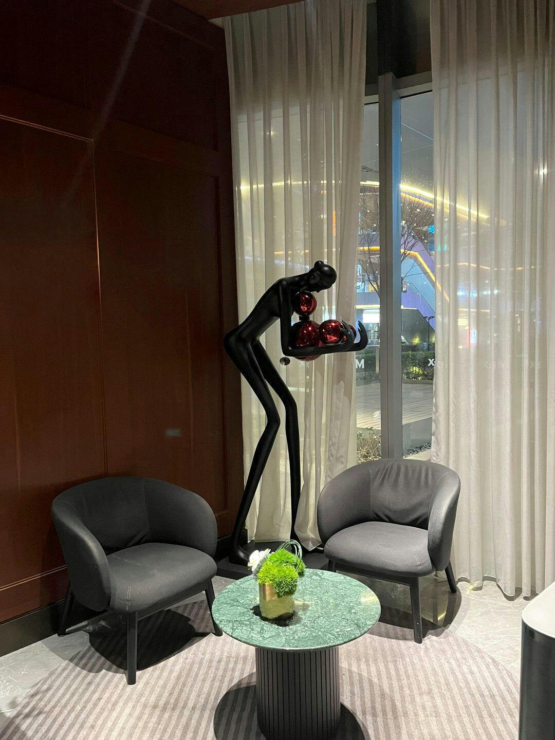 Flowing curves and a human form create a bold, art-inspired statement for modern interiors.