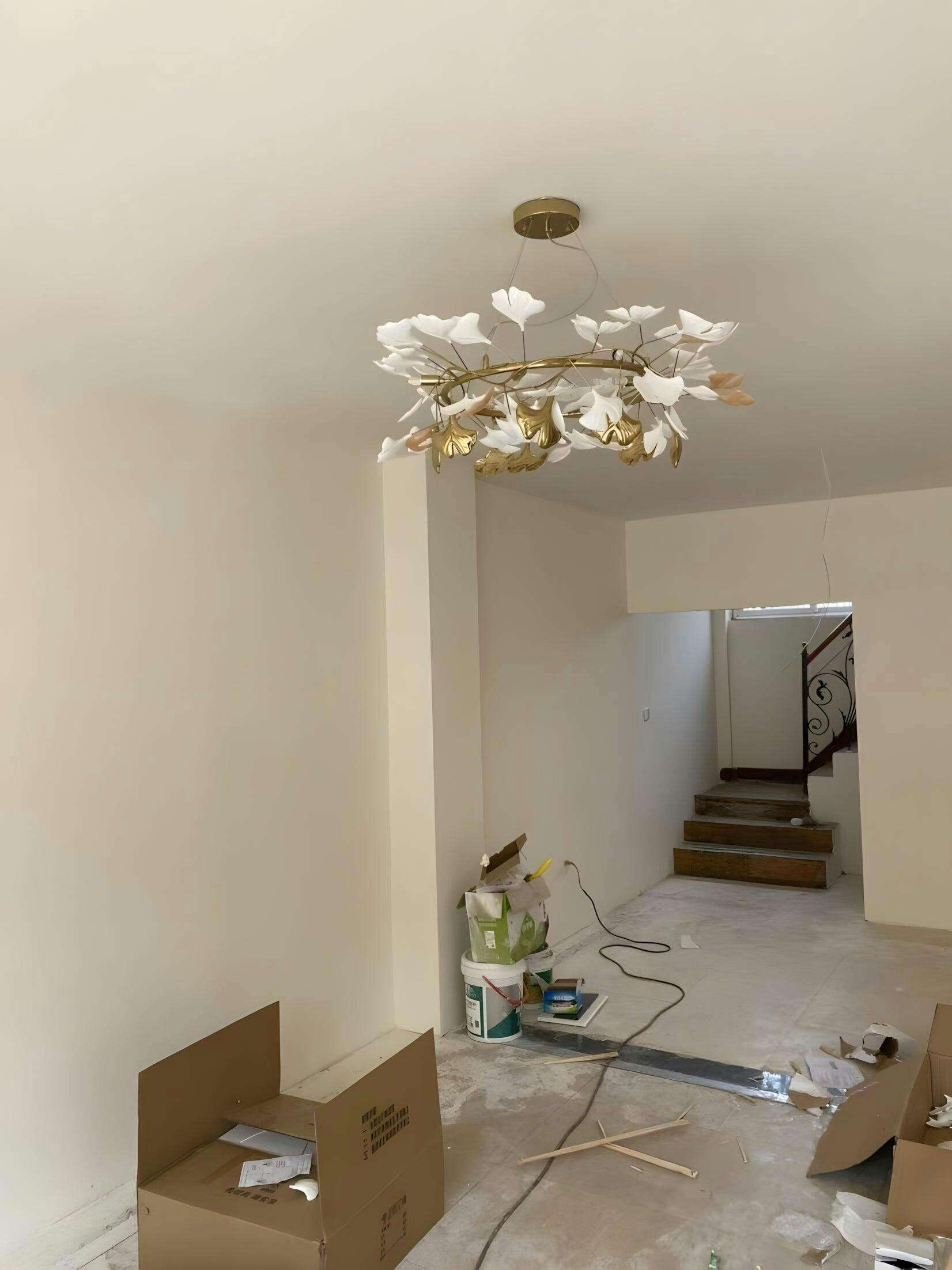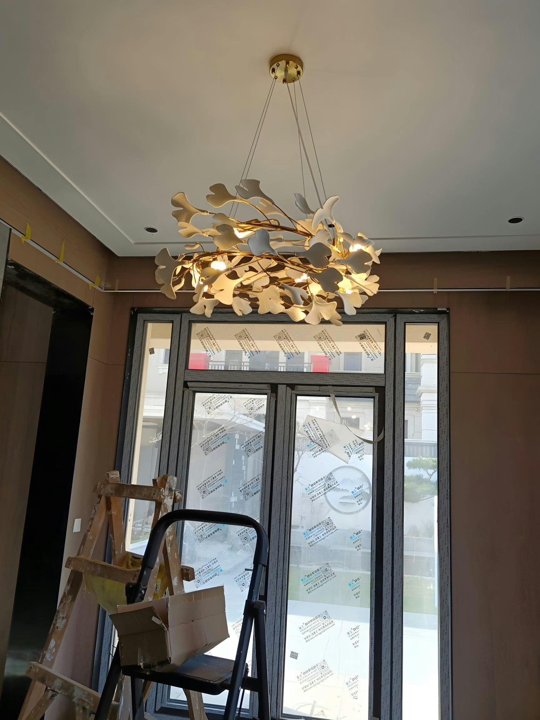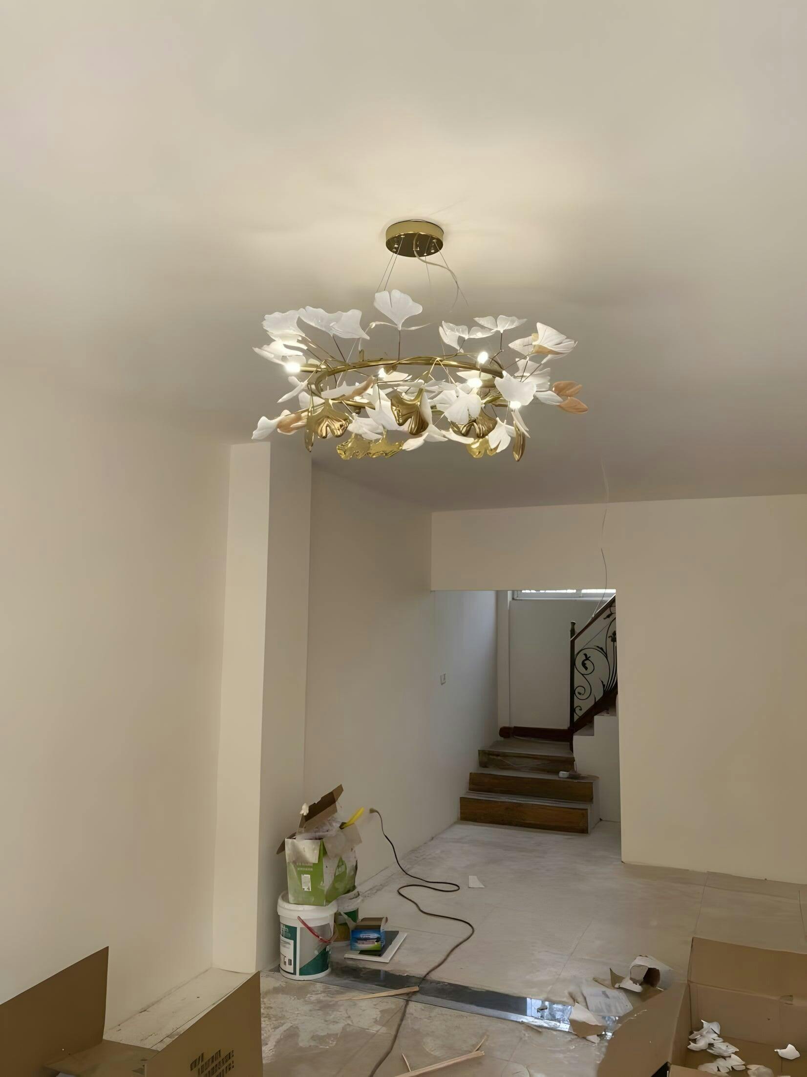 Transform your space with the Gingko Chandelier. Crafted from intricate, handcrafted porcelain leaves, this chandelier radiates warmth and elegance. Its natural, dynamic design mimics the energy of living plants, creating a soothing and rejuvenating atmosphere. A true work of art and light!