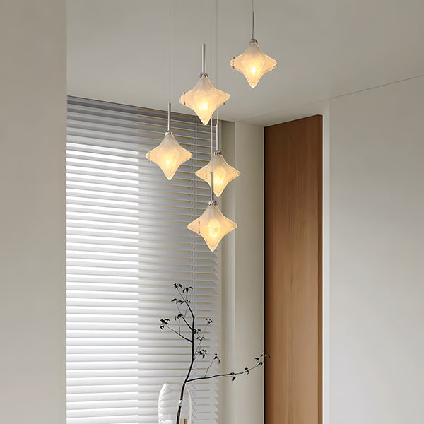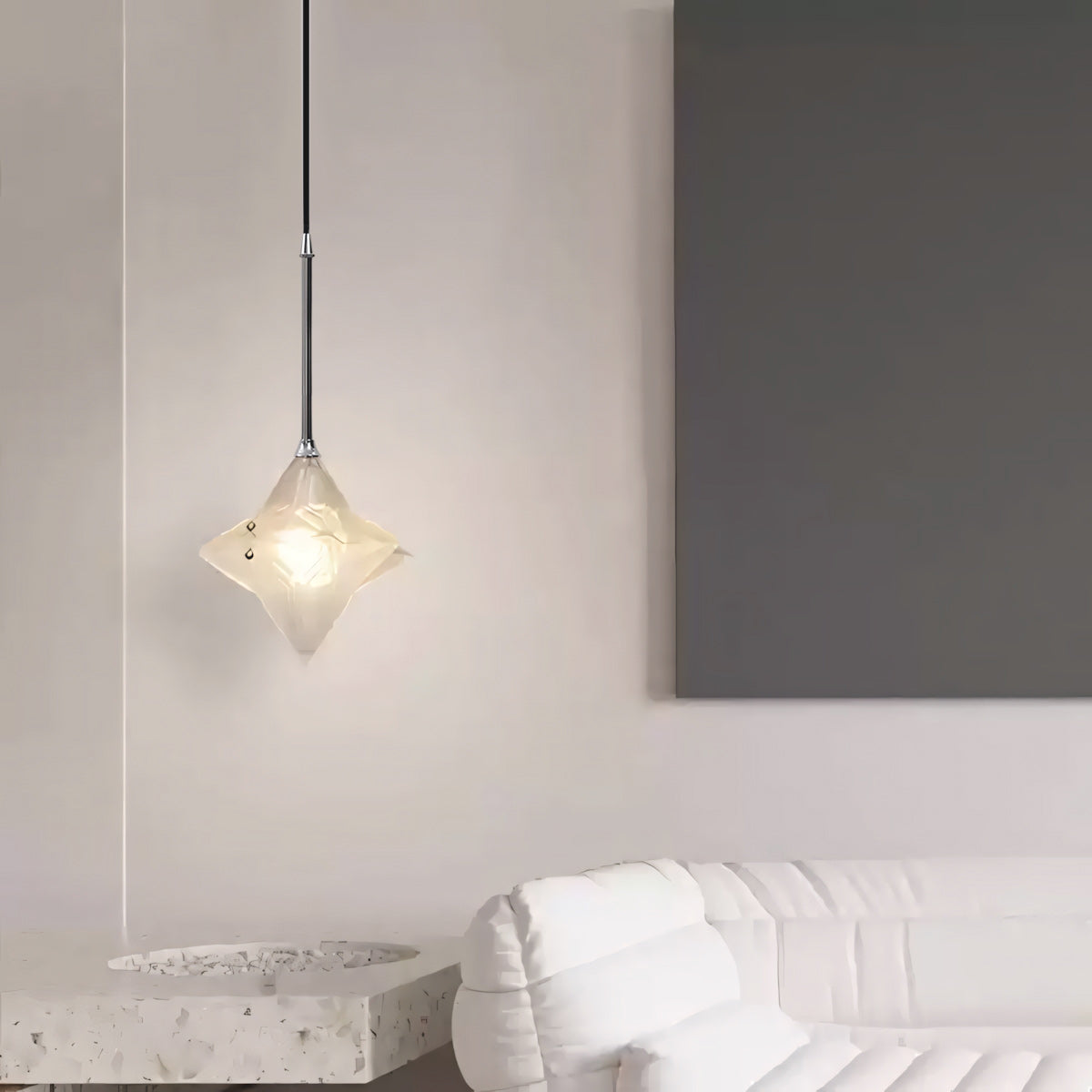 The sculptural star-shaped shade adds creativity and charm, casting warm light with artistic appeal.