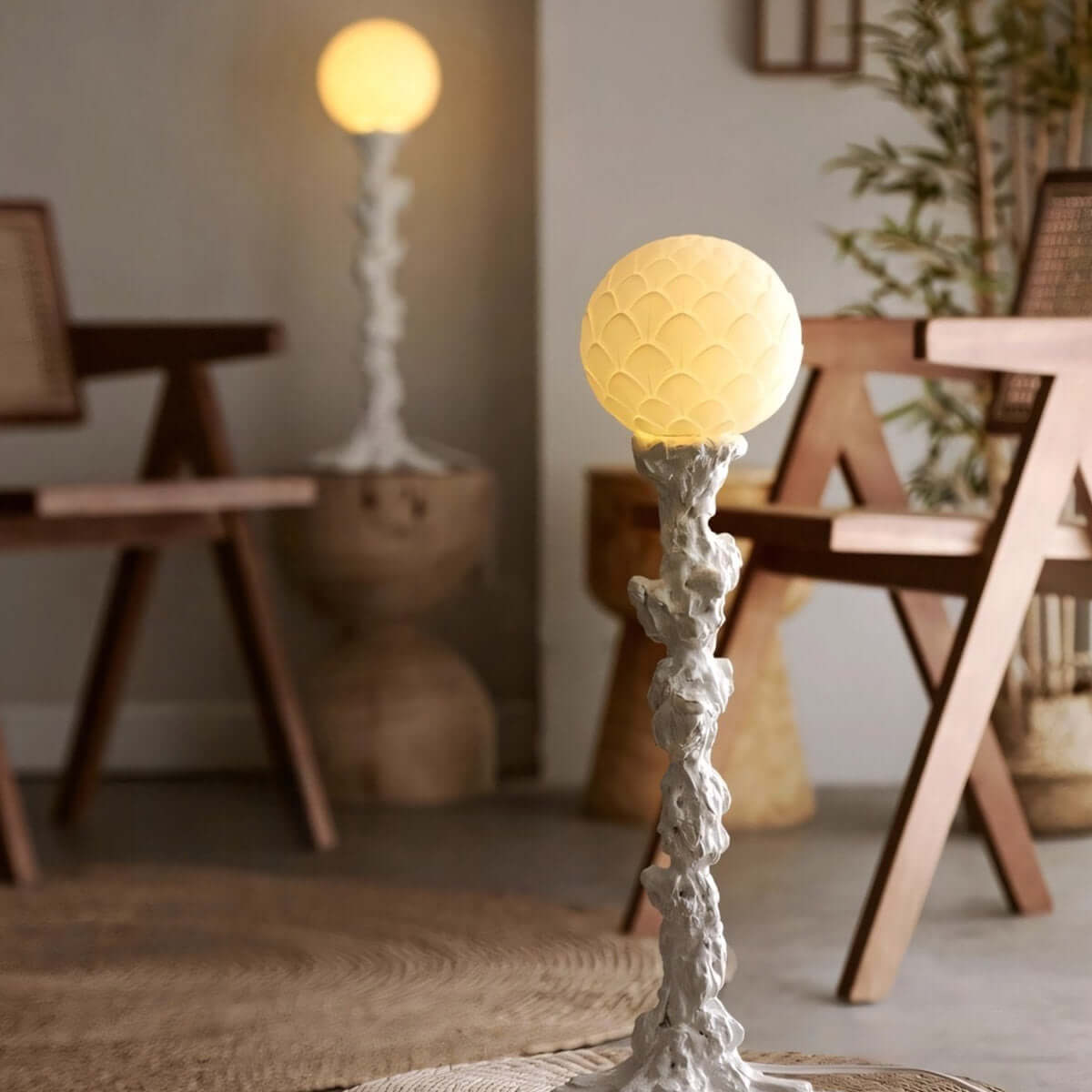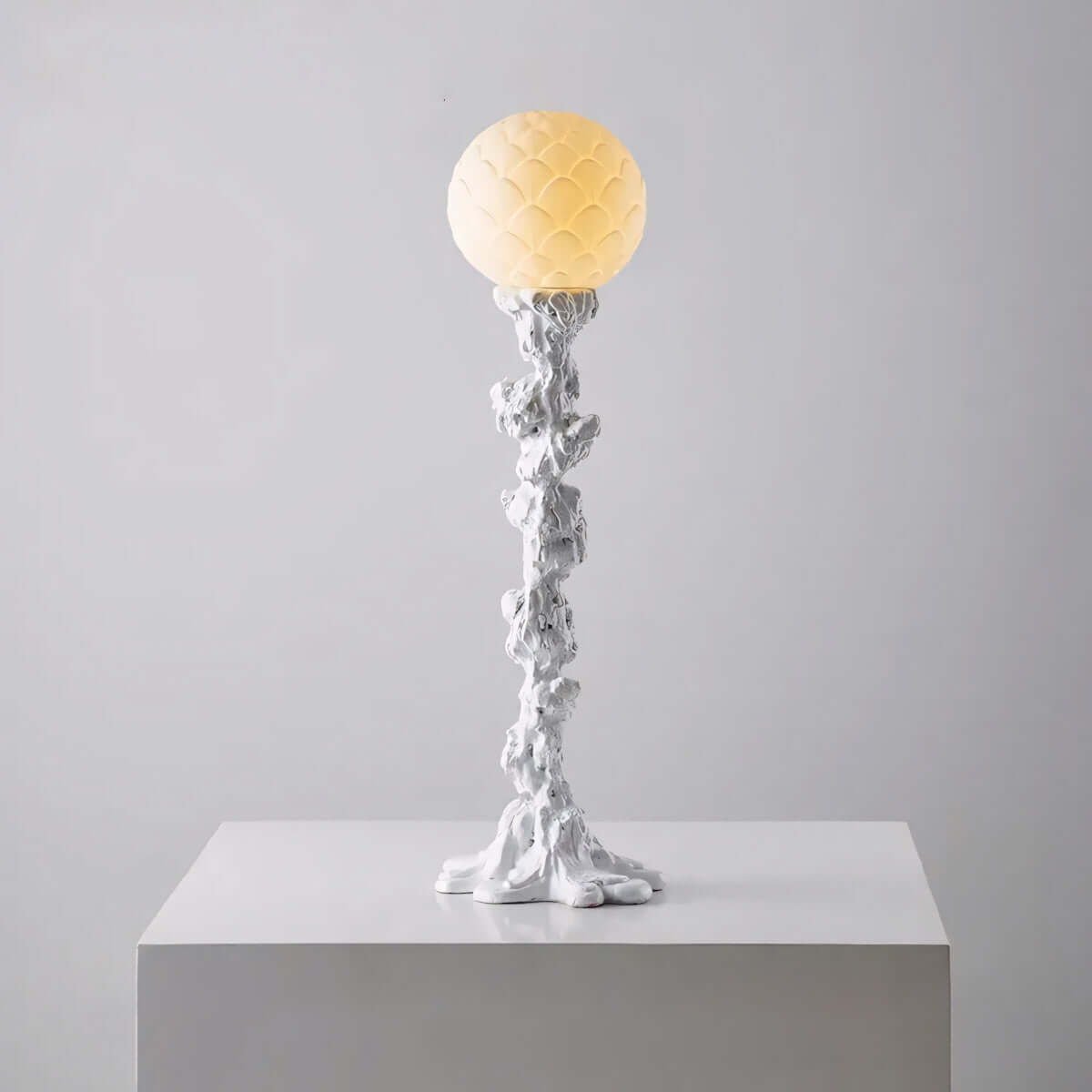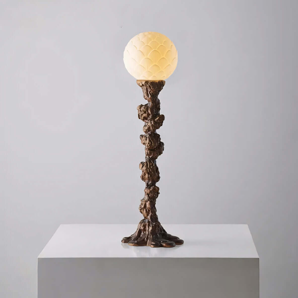 Built to last, the tree trunk–inspired resin base blends organic beauty with enduring modern design.