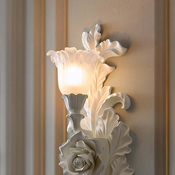 A beautifully crafted floral lampshade provides soft, comfortable light, perfect for relaxing.