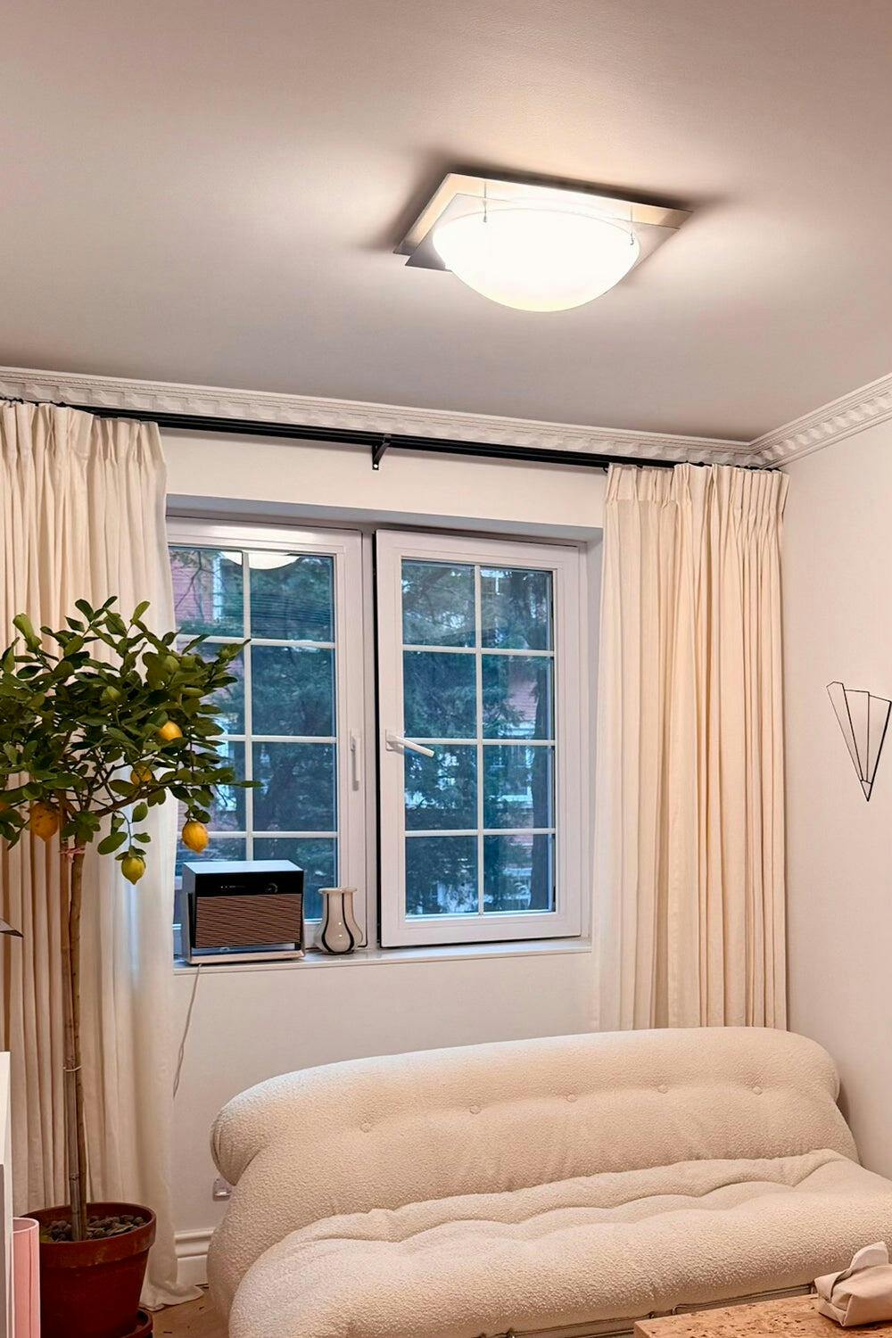 Elevate your space with the Vorela Ceiling Light — a modern LED fixture featuring a sleek chrome-finished body and soft white glass lampshade. Its minimalist square design brings light luxury style to bedrooms, studies, and living spaces with warm, cozy illumination and lasting durability.