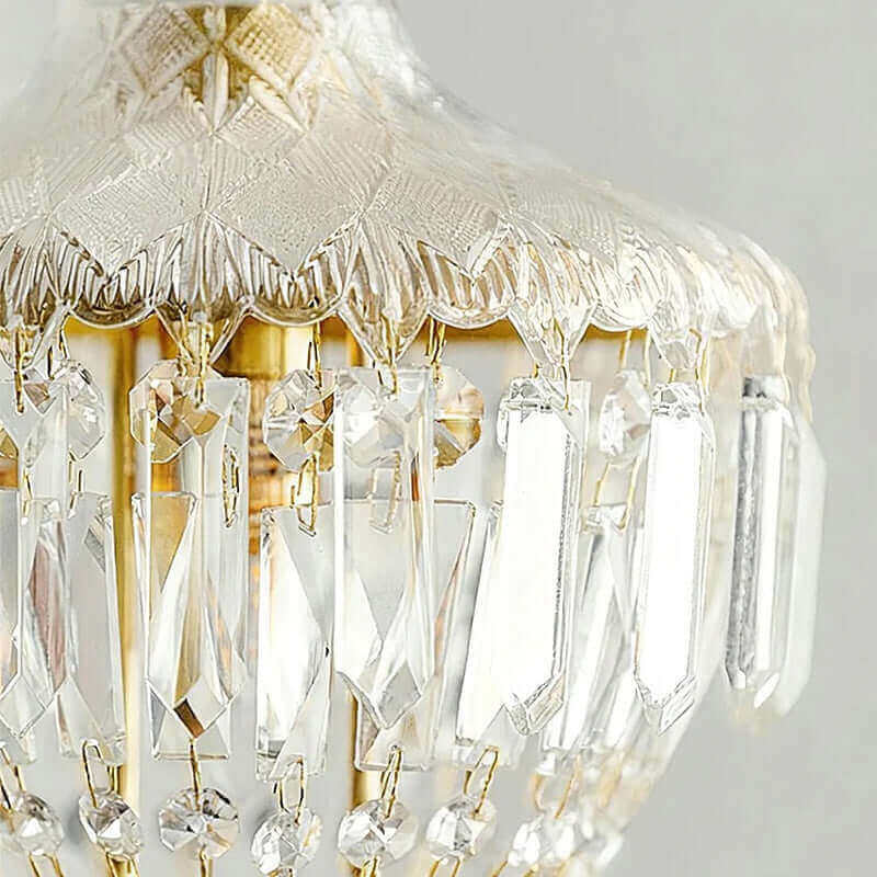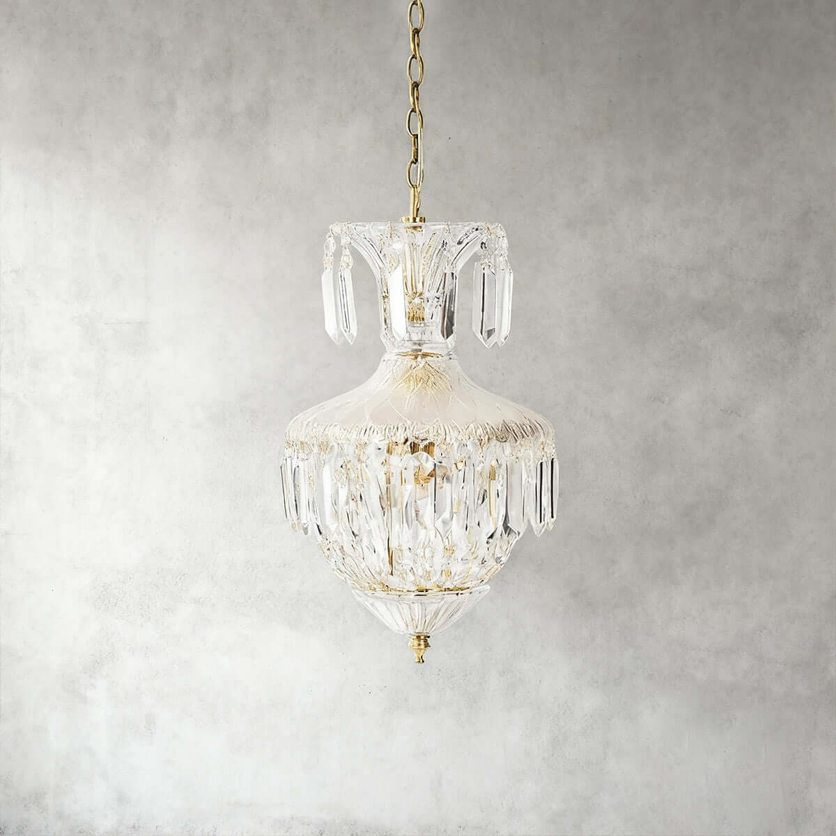 Bring vintage glamour home with the Cyntra Pendant Lamp. Sparkling crystal drops catch and scatter the light, while the warm gold metal frame adds a touch of understated luxury. Perfect above a bar counter, in an entryway, or as a statement piece for your living room or bedside.