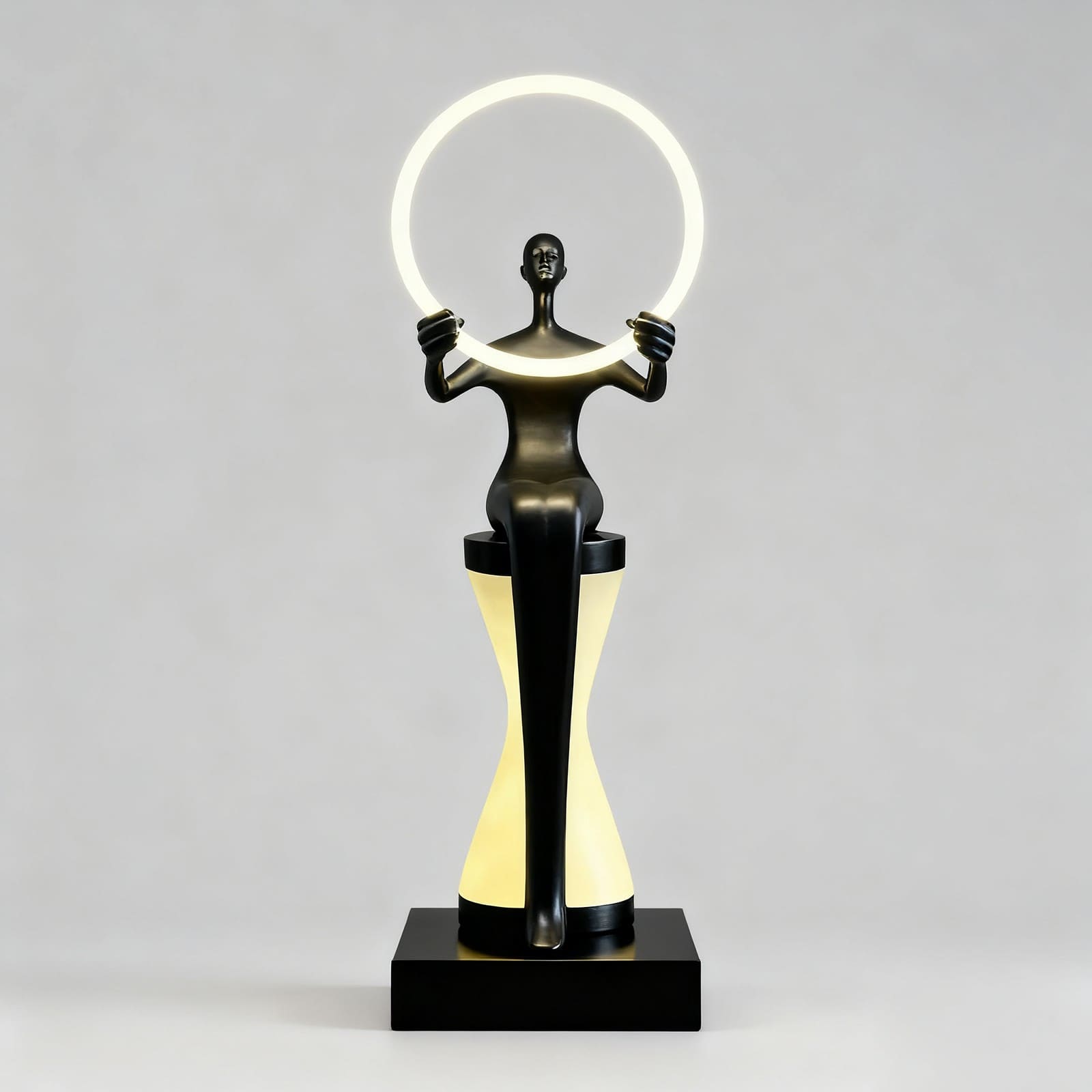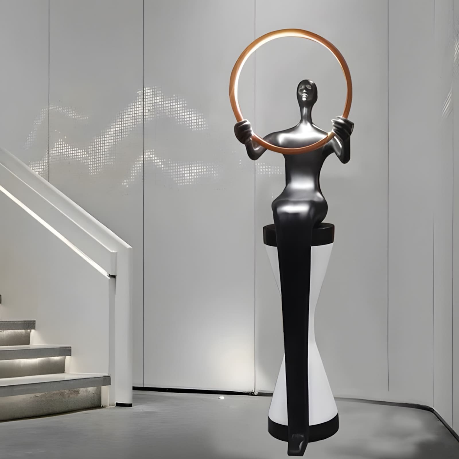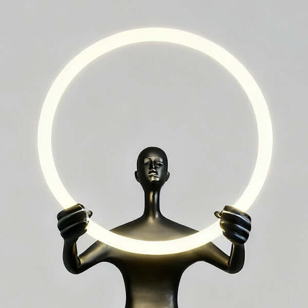 The figure holds a glowing LED ringβsymbolizing light, unity, and calm. A true statement for modern homes.