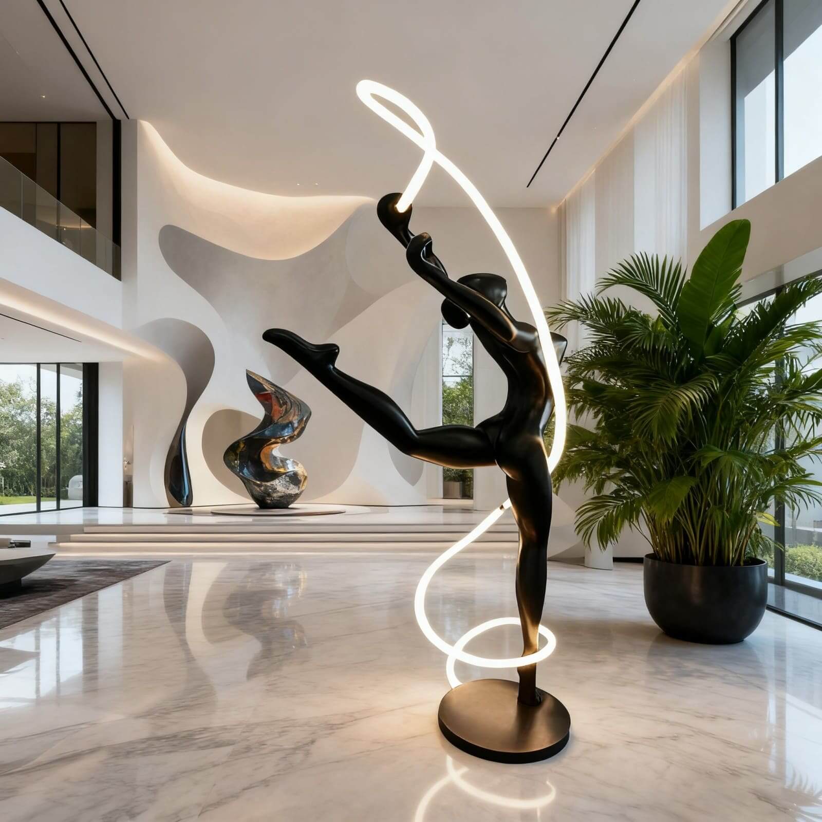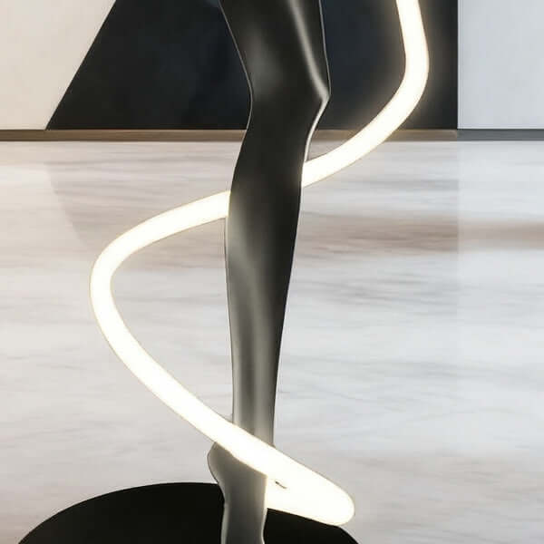 Bring movement and elegance to your space with the Veloma Sculpture Floor Lamp. Inspired by a ballerina mid-pose, this black art sculpture floor lamp features a flowing LED ribbon that spirals upward like energy in motion. Ideal for stair dΓ©cor, dance studios, or any room that deserves lighting with artistic soul.