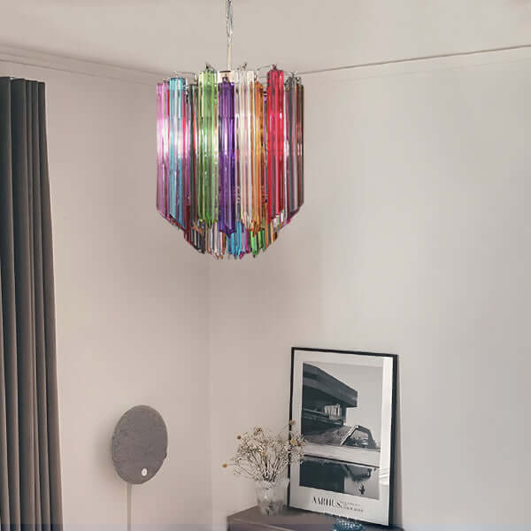 Multi-colored crystal prisms dazzle in the light, instantly becoming the centerpiece of any room.