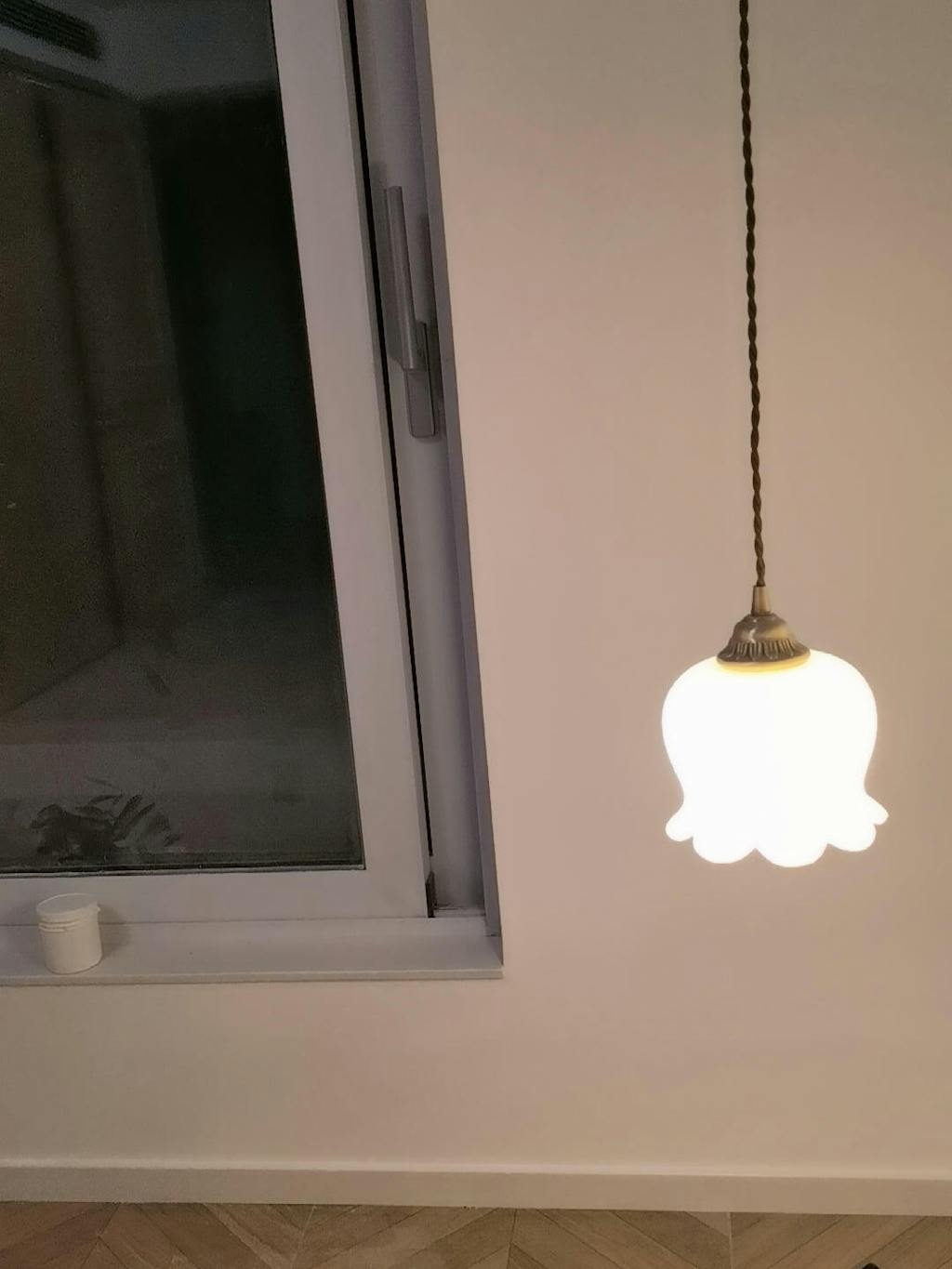 The brushed copper parts bring a modern, textured look that perfectly complements the lamp’s design.