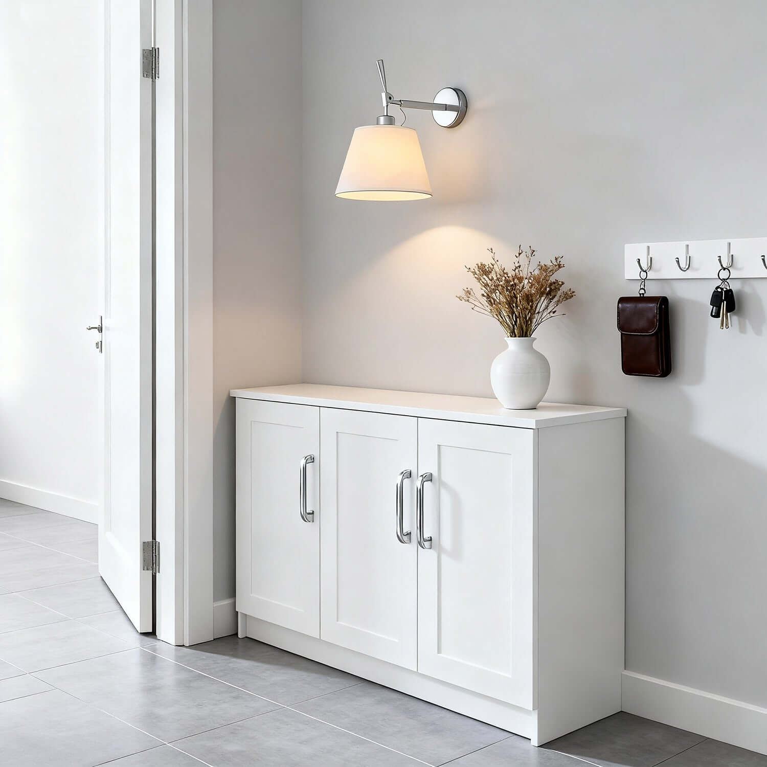 The Dolmire Wall Sconce brings modern industrial style to your home with a polished chrome finish, sturdy swing arm, and fabric shade. Its adjustable design directs light where you need it most—perfect for bedside reading, hallways, or entryways—blending practical function with refined, contemporary elegance.