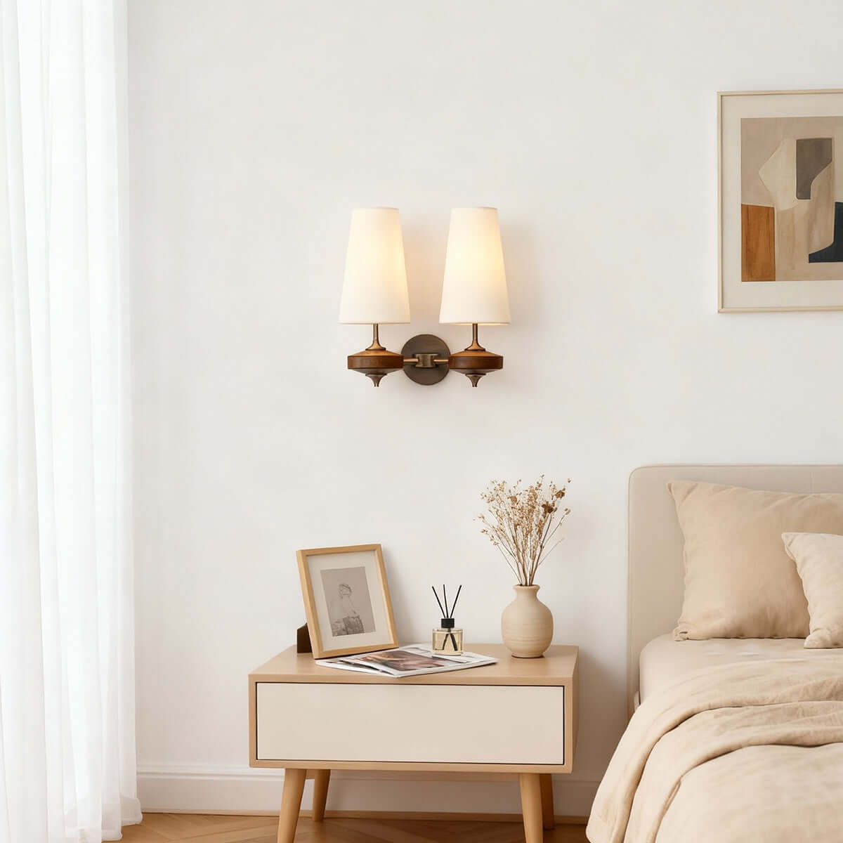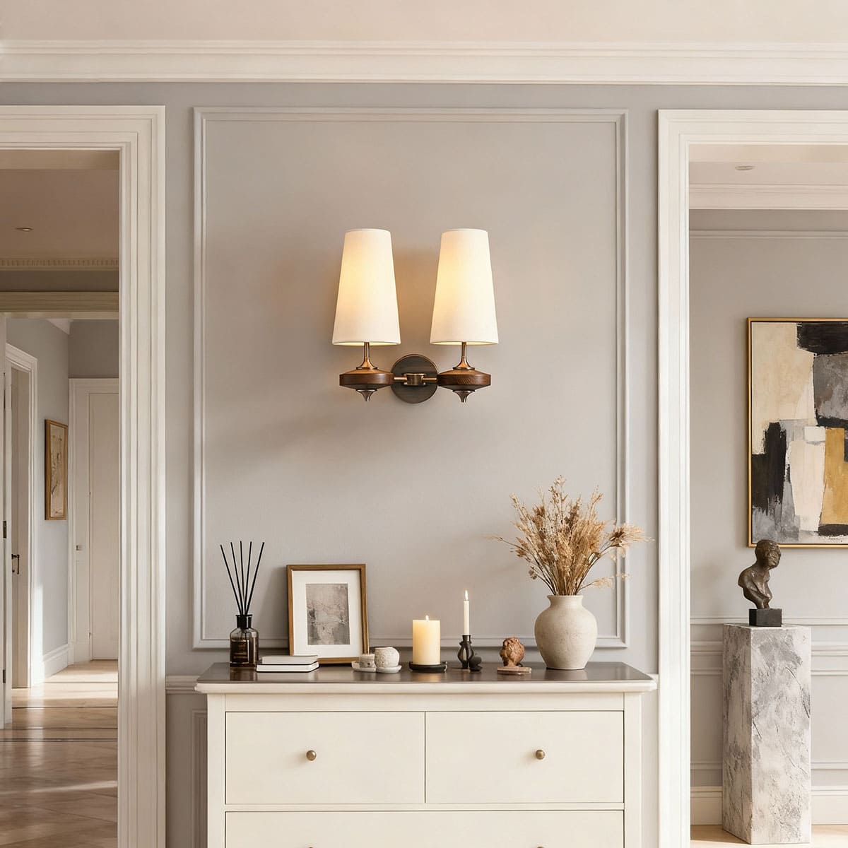 Bring timeless charm to your home with the Lenrix Wall Sconce. Crafted from natural wood and soft linen fabric, this French retro-style fixture adds elegant creativity to any hallway, entryway, or bedroom. Its handcrafted detail and warm tones create a cozy, vintage-inspired ambiance.
