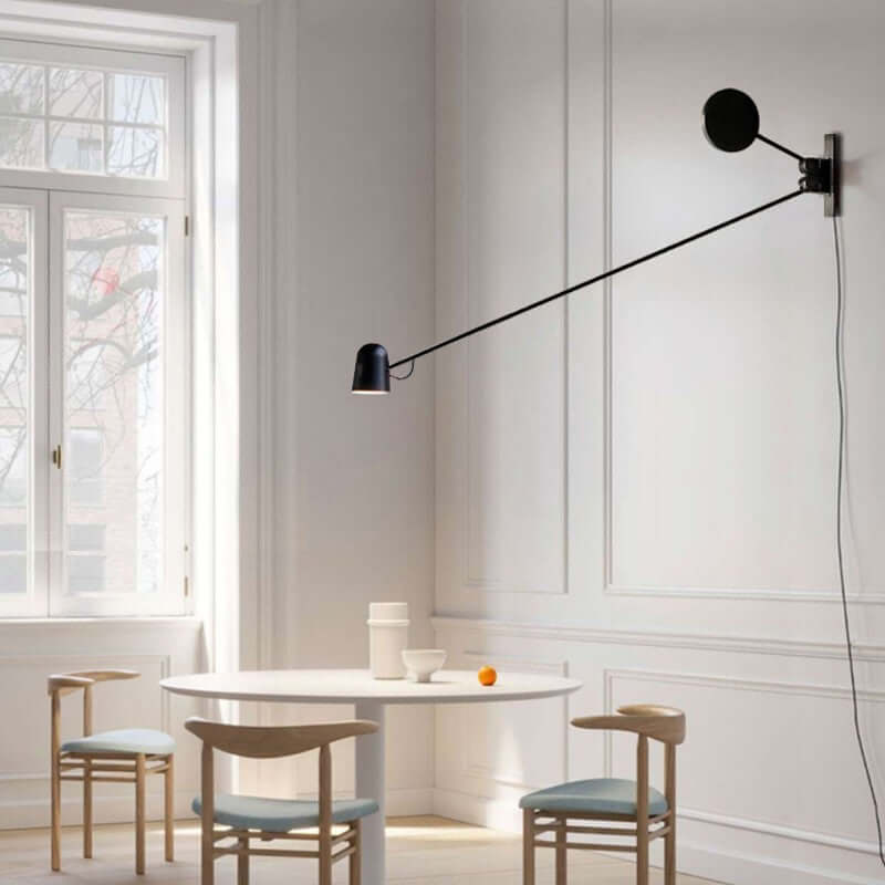 The Orivelle Wall Lamp blends Nordic retro industrial style with a minimalist design, offering both form and function. Its flexible rocker arm allows for easy positioning, perfect for a reading nook or accent wall in the living room. Available in black or white, this stylish lamp adds a creative, elegant touch to any space.