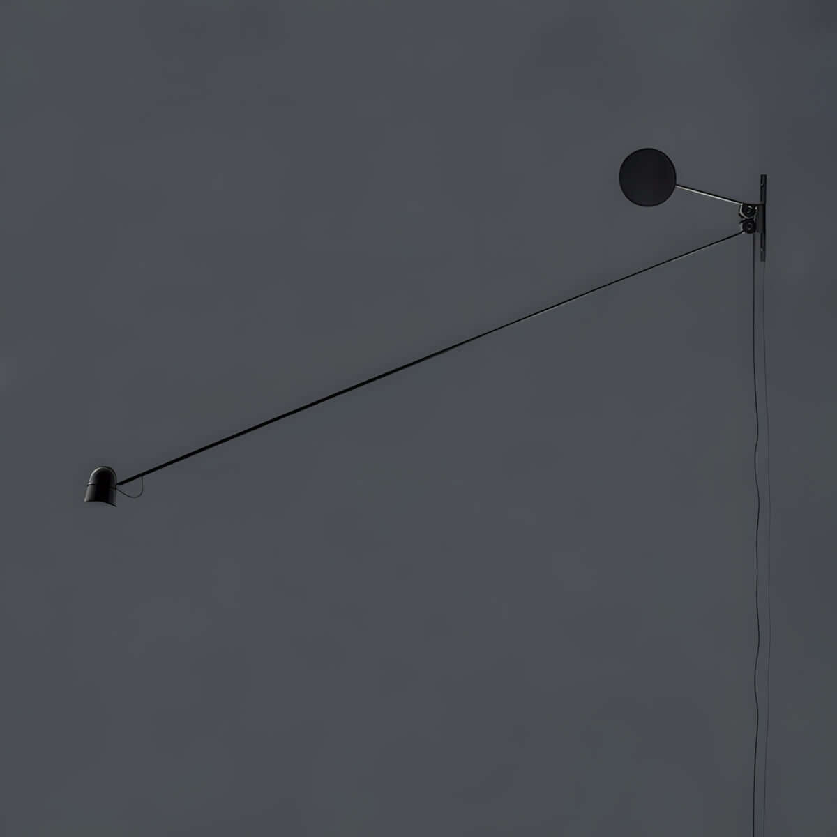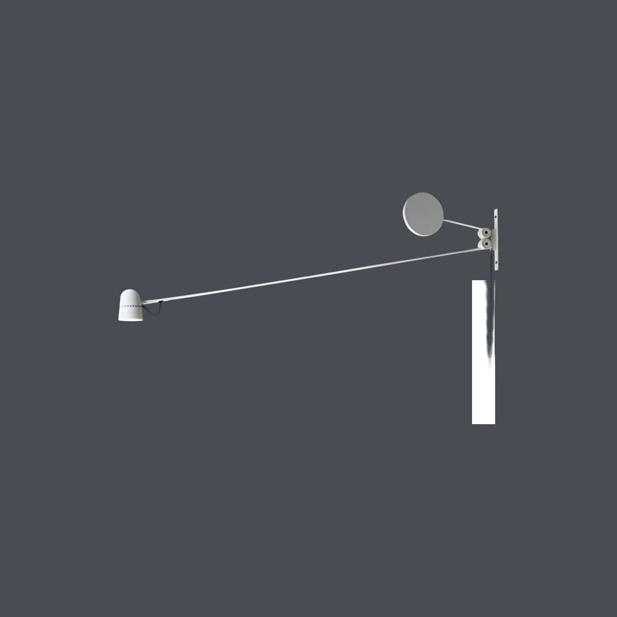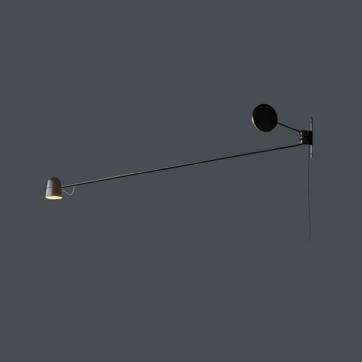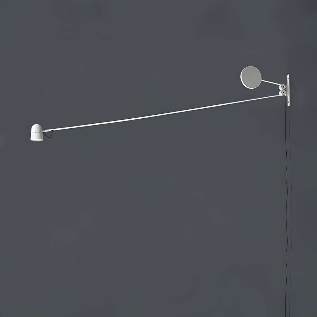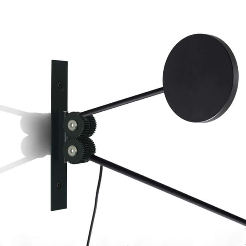 The circular counterweight compensates for the arm’s movement, ensuring balanced light output.