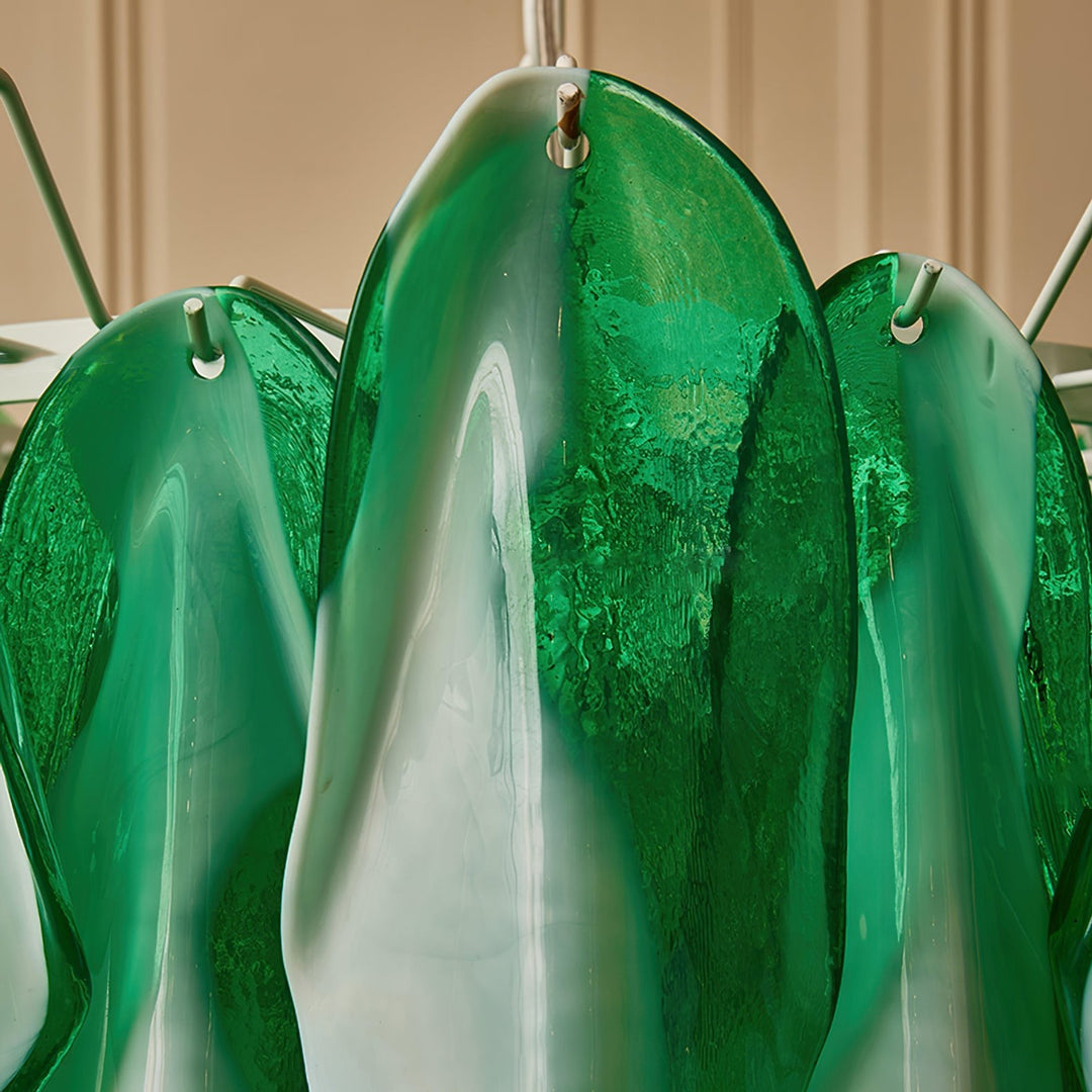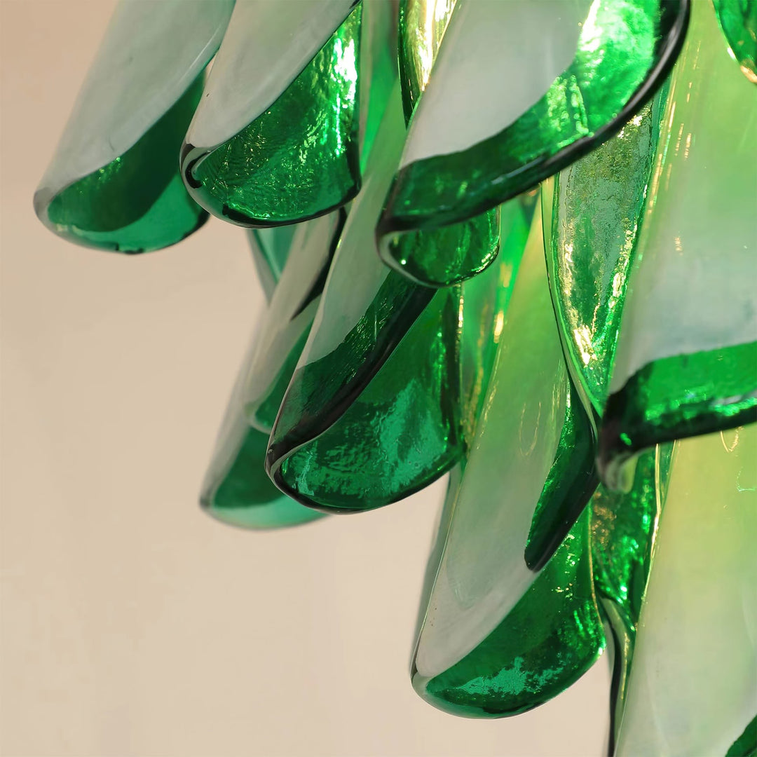 The Orphia Chandelier showcases stunning hand-blown Murano-style glass, beautifully layered with warm metal accents. This French vintage-inspired chandelier creates a romantic, elegant glow as the textured glass cascades down. Perfect for dining rooms, living areas, or upscale lobbies, it blends vintage craftsmanship with contemporary style for a luxurious touch.