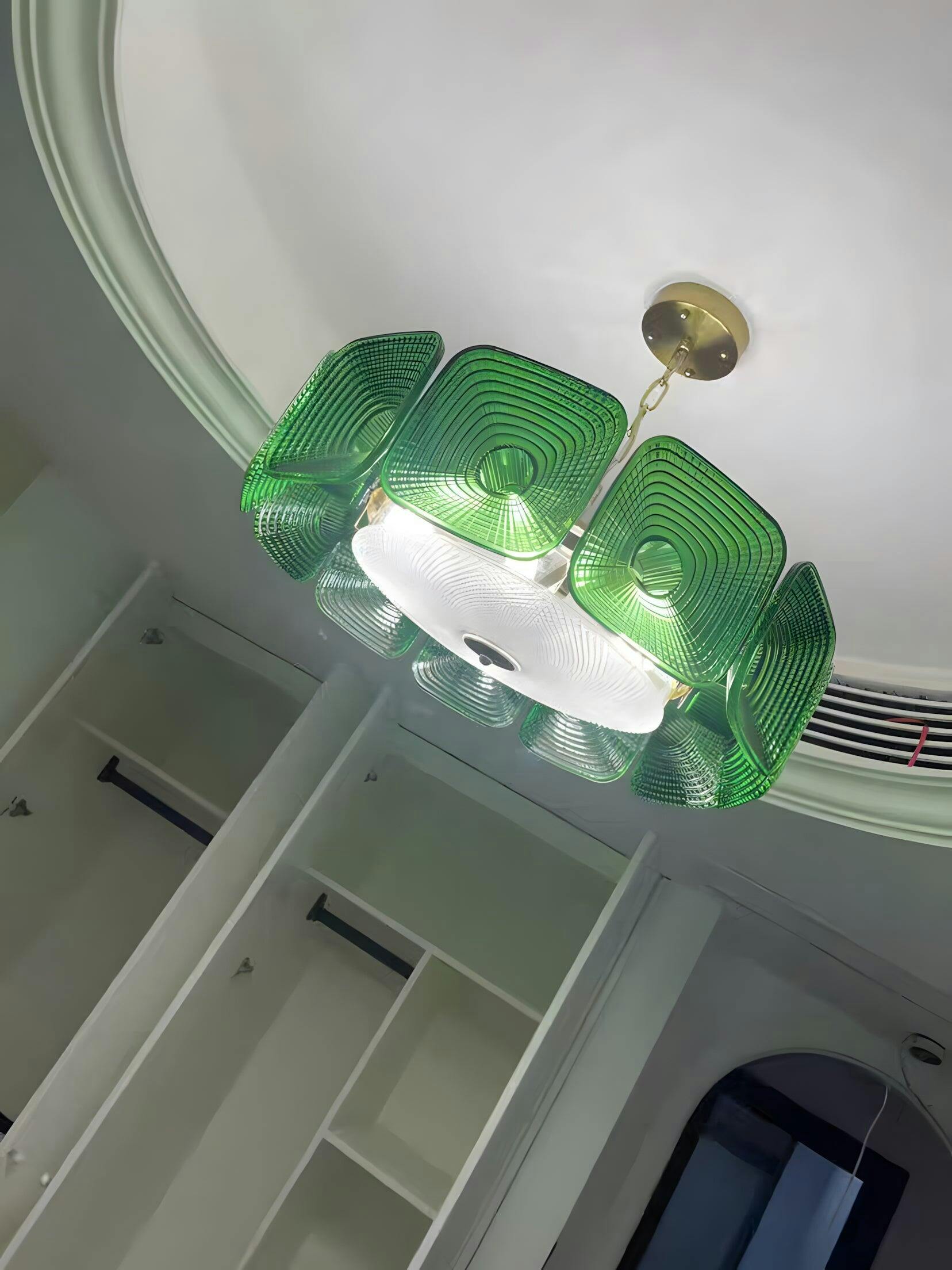 Illuminate your space with the Solvani Chandelier, crafted from emerald green glass and vintage metal details. This light luxury piece brings French retro style and art deco elegance to your dining room, foyer, or living room, creating a warm, inviting atmosphere that enhances any well-designed interior.
