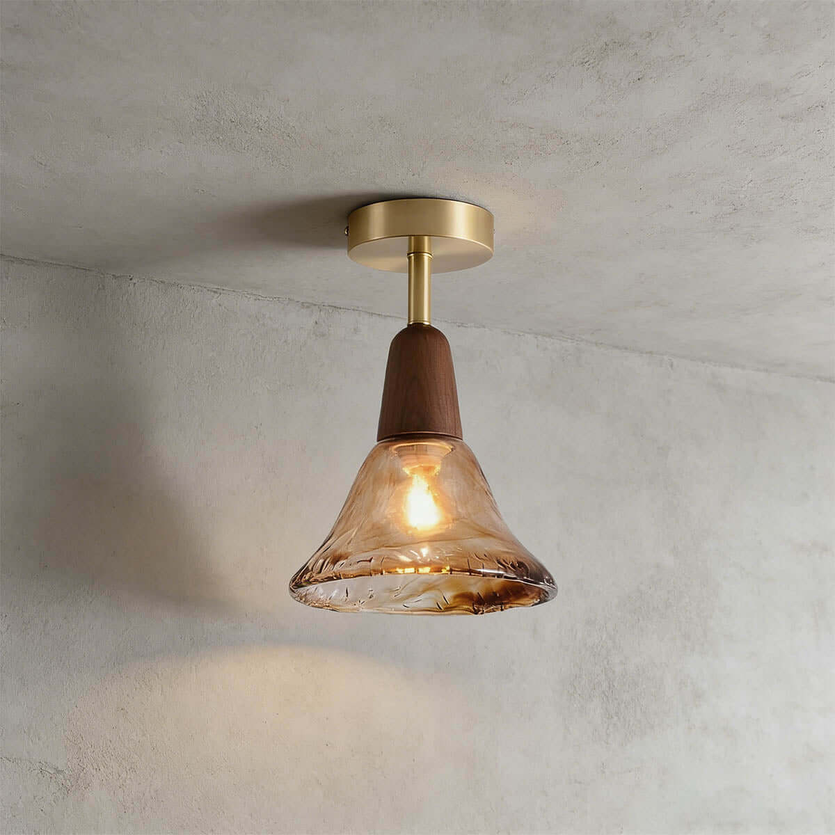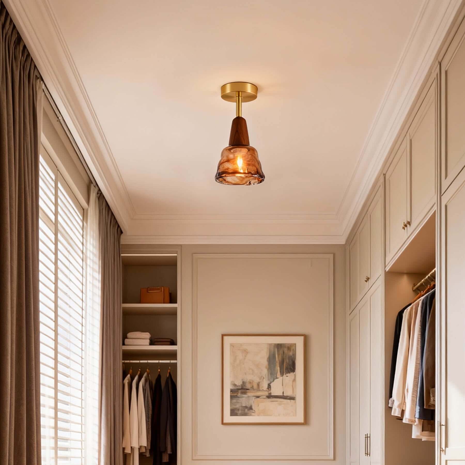 Light up your home with the Evarno Ceiling Lamp, a vintage ceiling light in American style featuring an exquisite art glass shade and smooth wood accents. Its warm, soft glow wraps hallways, entryways, or dressing rooms in cozy radiance, adding rich decorative art deco charm to your everyday living space with ease and style.