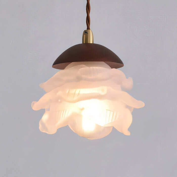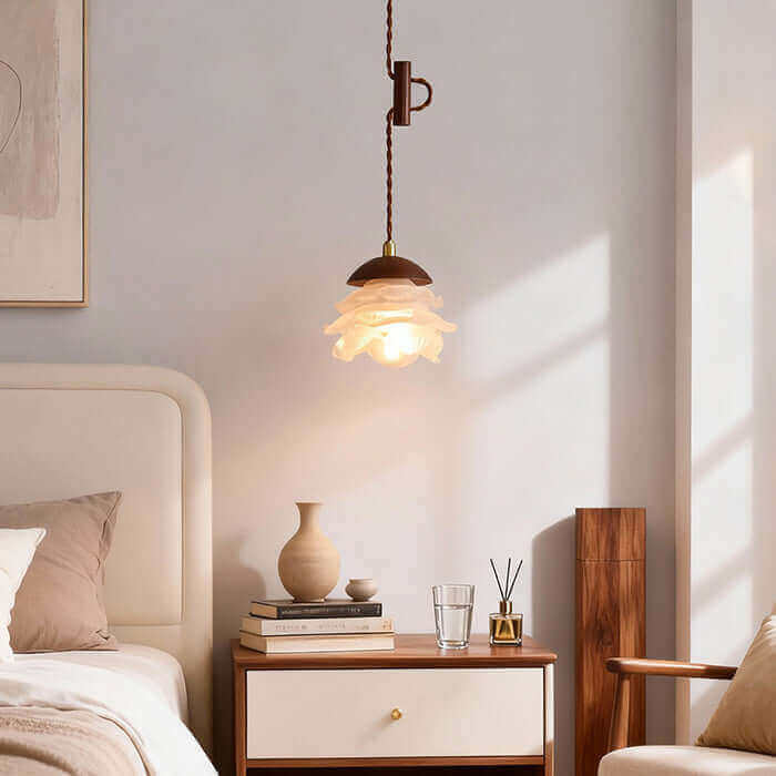 Brighten your space with the Maruvo Pendant Light, a French retro gem featuring a delicate flower-shaped glass shade and natural wood accents. Its creative design casts a warm, ambient glow—perfect for bedside lighting, bar counters, or intimate dining areas. Elegant, artistic, and timeless.