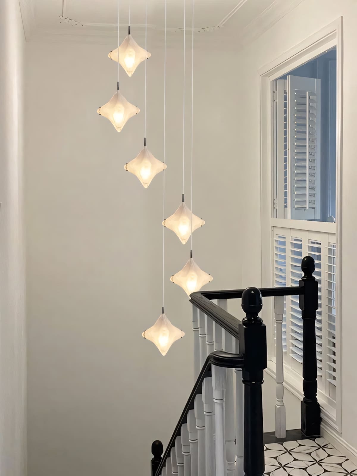 An eye-catching star-shaped design cascades beautifully, turning staircases into stunning centerpieces.