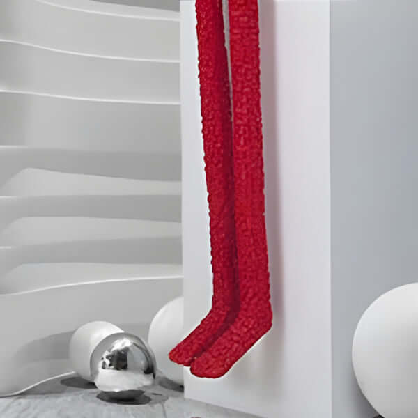 Its exaggerated long legs and vibrant red finish create an instant visual focal point in any modern space.