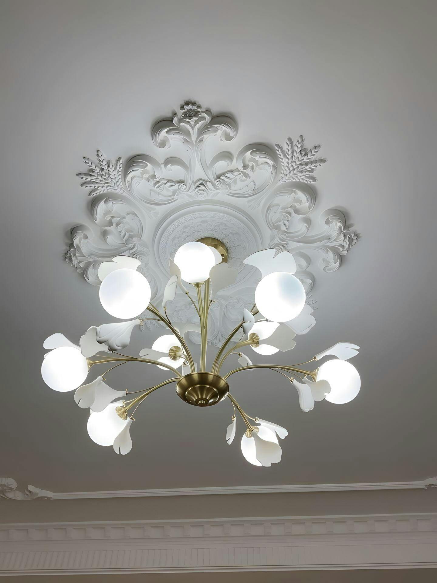 • Unique Design: Featuring delicately crafted Ginkgo ceramics, with a white, frosted texture that gives the light a soft, luxurious glow.