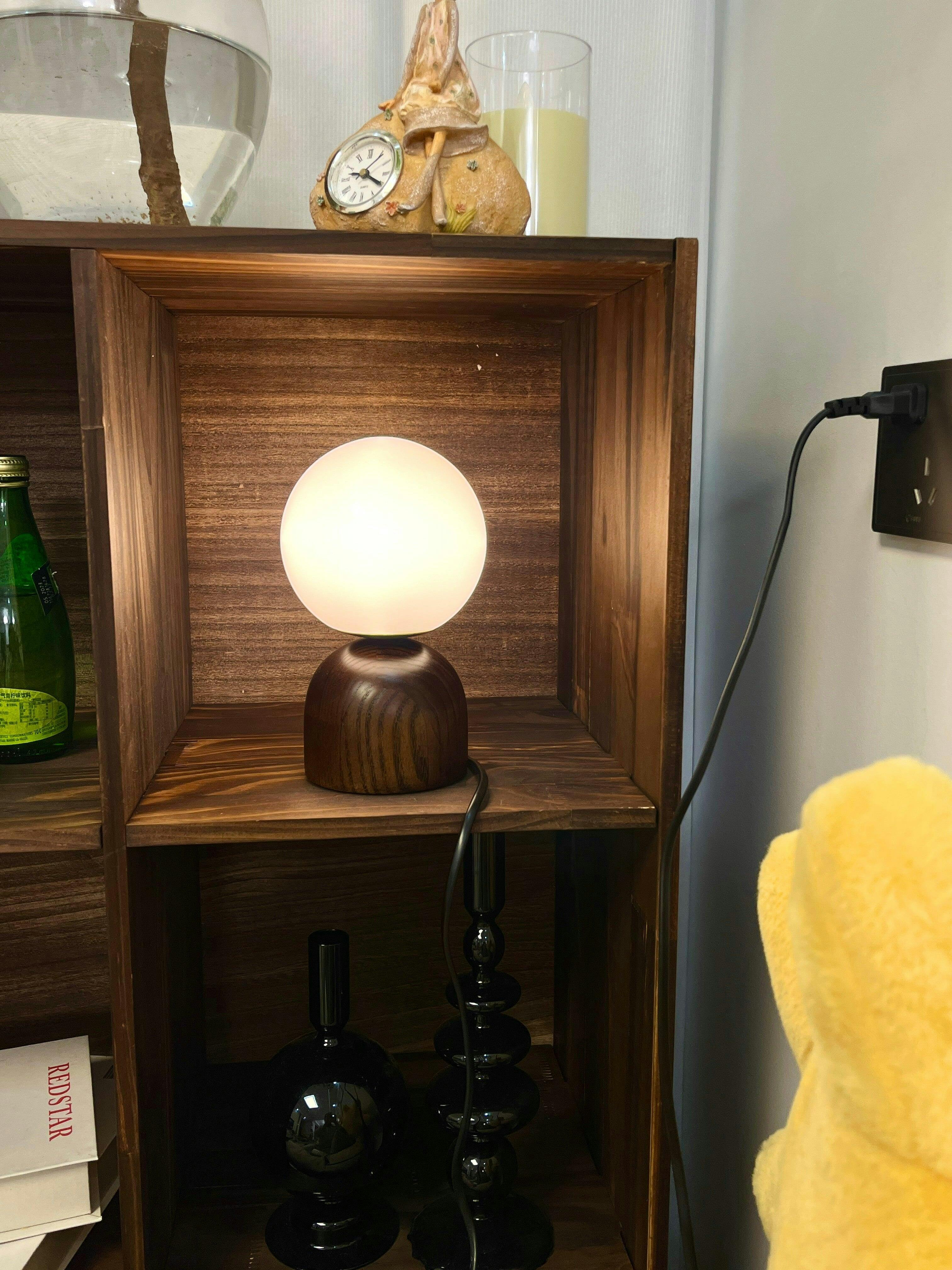 The Wood Knuckle Table Lamp brings a perfect blend of modern design and traditional craftsmanship to your living room or bedside. With its elegant solid wood base and frosted glass shade, this chic lamp casts a warm glow that enhances any room's aesthetic. A stylish art deco piece that elevates your home.