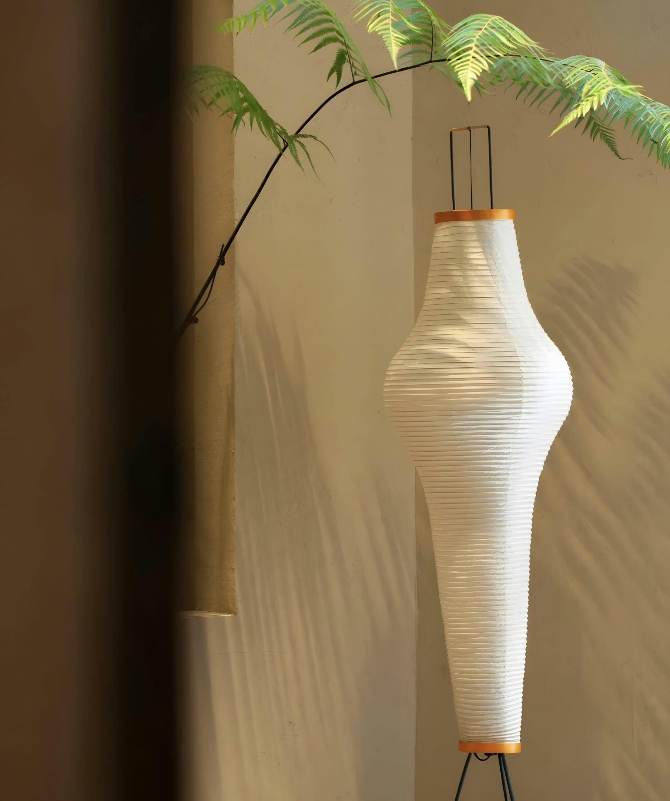The washi paper shade diffuses light gently, creating a cozy, calming atmosphere.