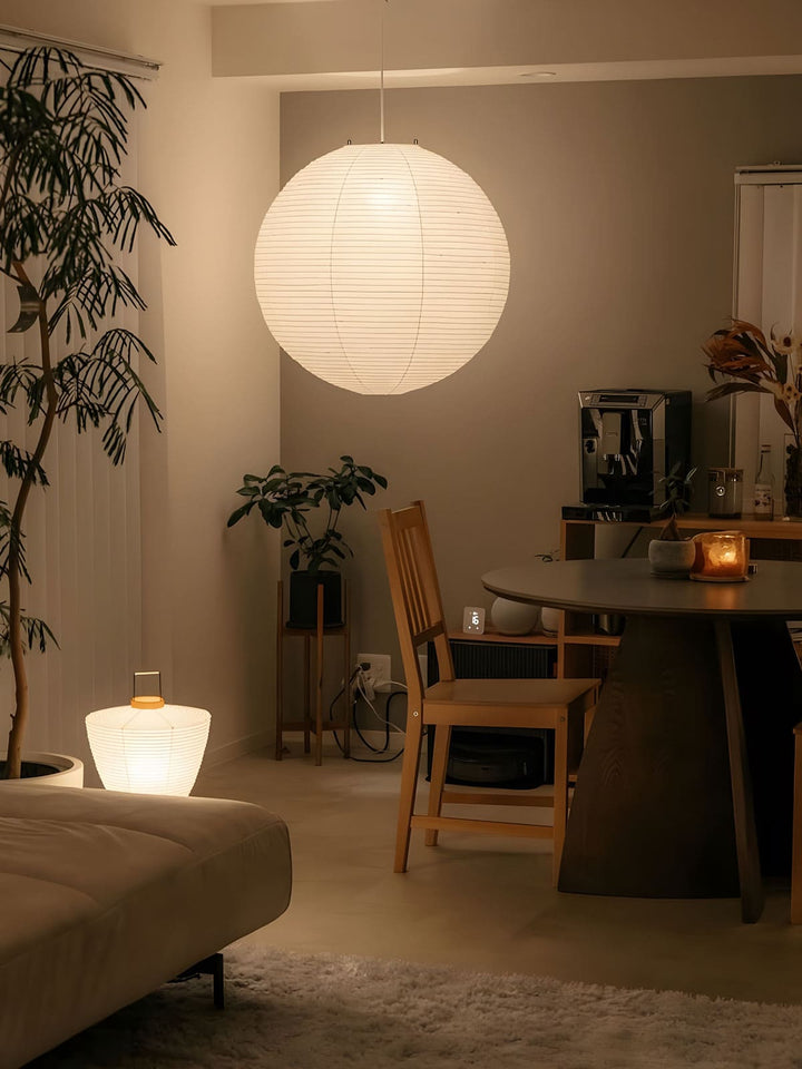 Each light is made by hand using traditional washi paper, carefully cut and shaped in molds, then air-dried for a one-of-a-kind feel.