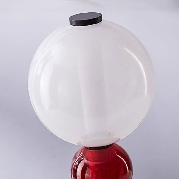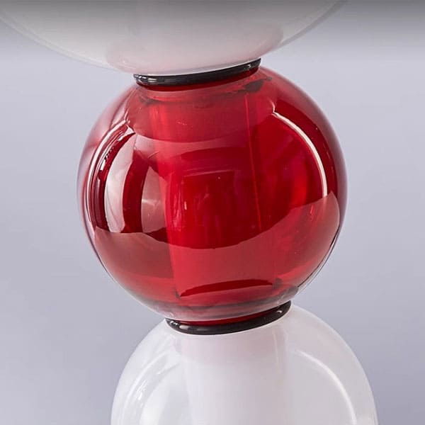 The lampshade is made from colorful glass, creating a playful and dynamic glow that brightens any room.
