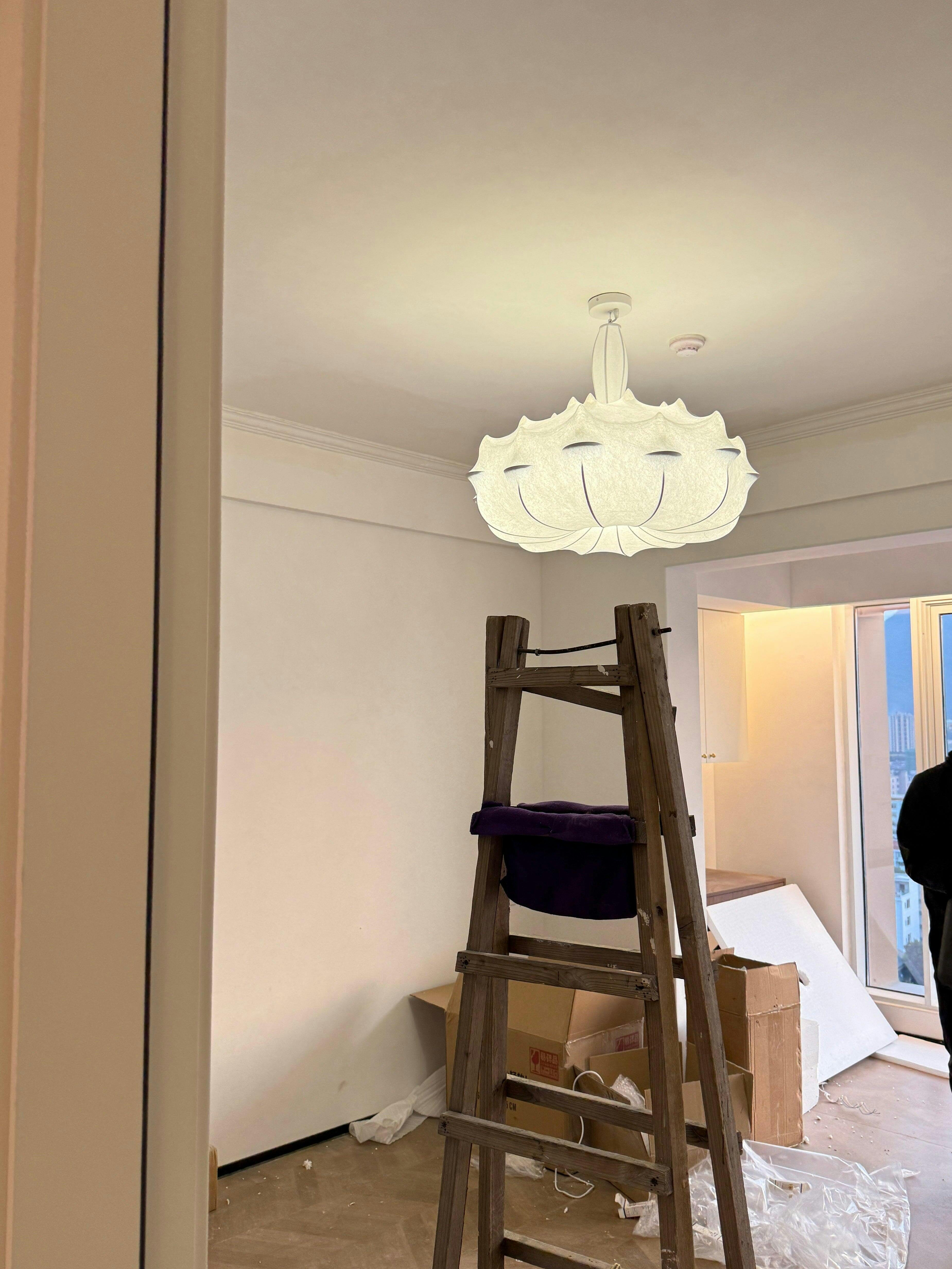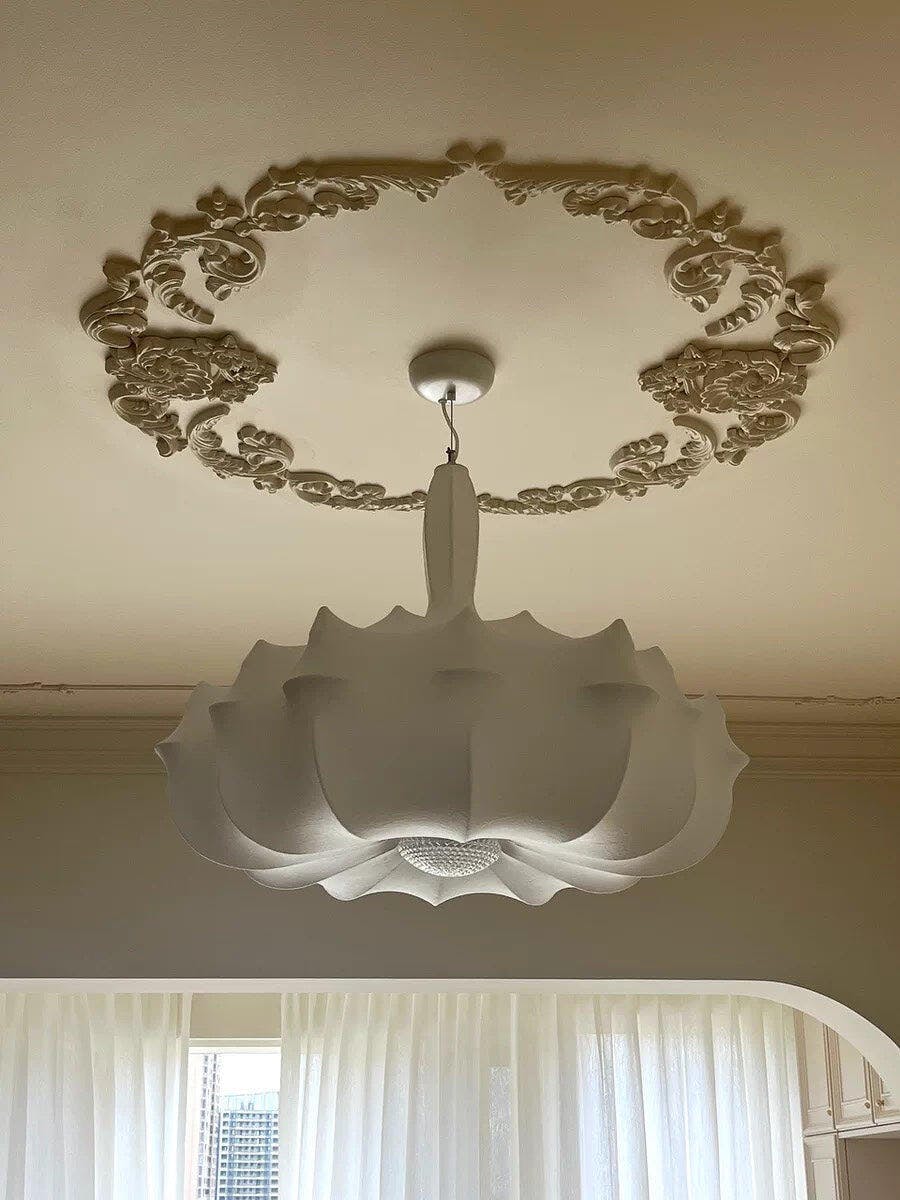 Transform your space with the White Ghost Pendant Lamp. Crafted from resin and silk, this unique pendant light features a soft, cocoon-like glow, perfect for creating a dreamy atmosphere. Its stunning crystal globe adds a touch of sparkle, making it an unforgettable statement piece for your living room. Ideal for Japandi-inspired décor, this bold yet elegant design brings sophistication and serenity to any room.